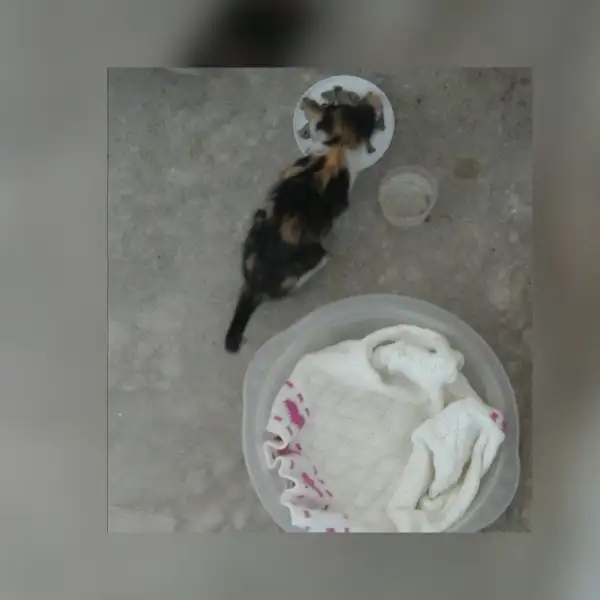 Kutu vardi zaten abla içine girmişEvde yemek artığın var mı? yemek artığın varsa içine ekmek içi ufalayıp hafif ılıtarak verebilirsin, açlıktan ziyade tek kaldığı için miyavlıyordur, mümkünse biraz su ve varsa bir karton kutuya bez parçası koyup dışarı koy içine kıvrılıp yatsın bebecik.