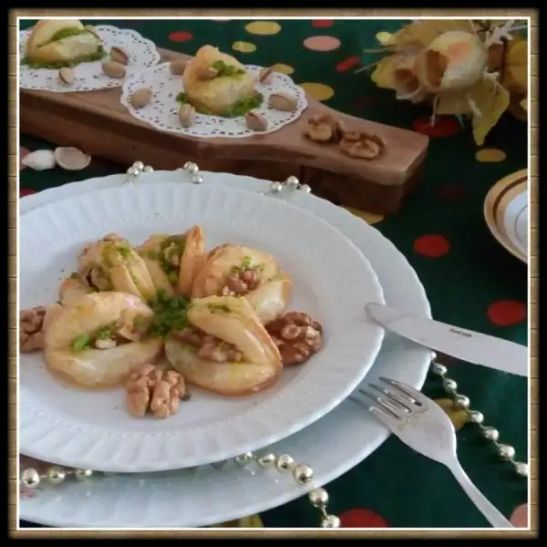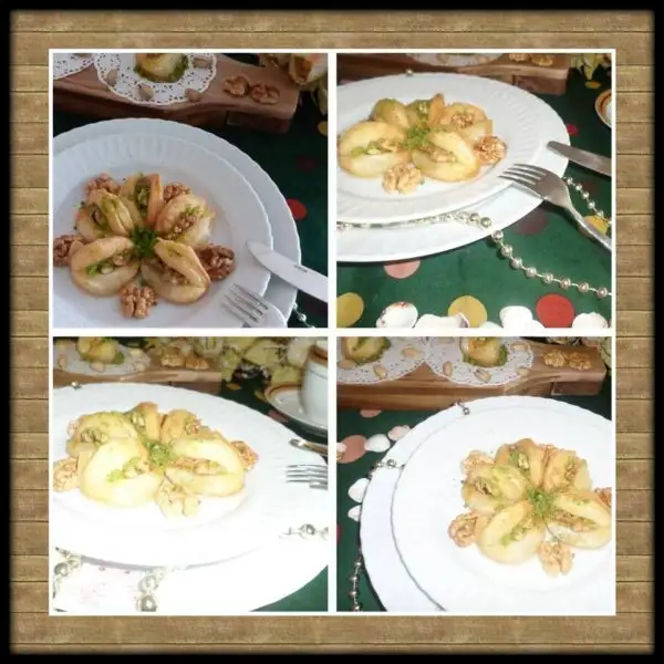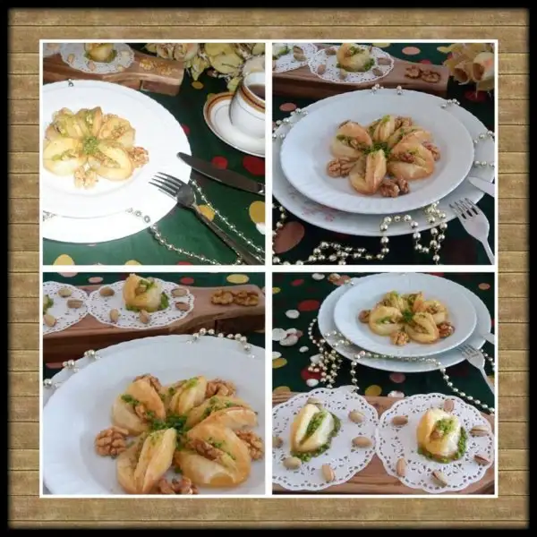 Açtığınız hamuru ince ağızlı bir su bardağı veya kalıp ile yuvarlak olarak kesin.Çok fazla parça çıkarmamaya dikkat edelim..(çıkan hamurlarla baklava yaptım ve ara katına onları yerleştirdim,sizde isterseniz öyle değerlendirebilirsiniz veya içine ceviz koyarak ayrı bir tepsiye dizebilirsiniz)Her parçanın içine ceviz koyup ağzına bastırmadan hafifçe kapatın ve tepsiye dizin. Tepsiye sığmazsa sıkıştırarak yerleştirebilirsiniz.Diğer 15 er bezeyide açıp aynı işlemi yapın Üzerine bolca yağ sürüp 175 derecelik önceden ısıtılmış fırına sürün.Kızaran tatlıları fırından alıp soğumaya bırakın.