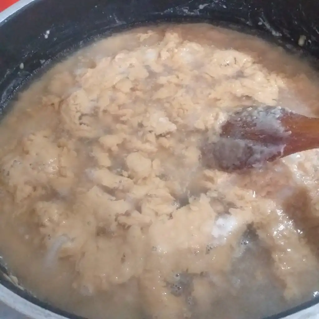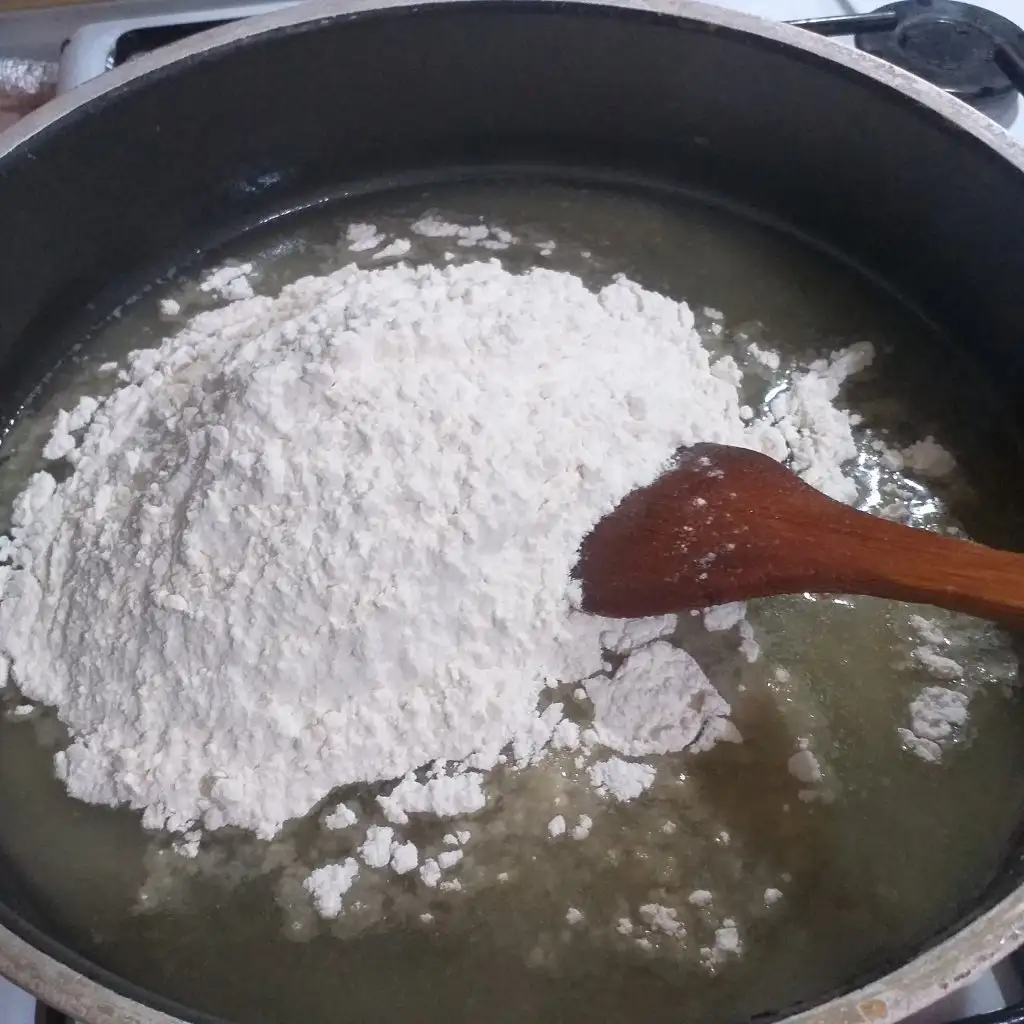 Soğuk serbetimizi kavrulmuş unumuza yavaşca ekleyip sıcramaması icin kapagini yarim kapatarak karistiriyoruz.