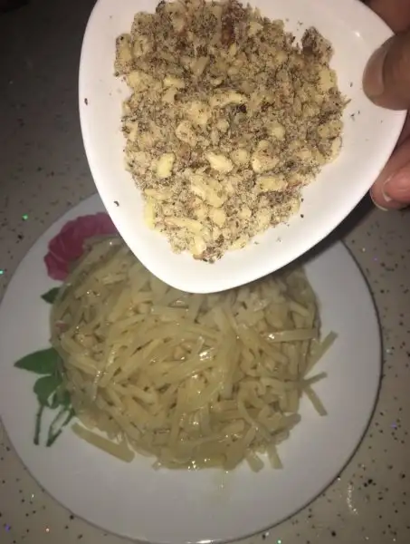 Tereyağını kızdırıp yemeğin üzerine gezdirelim.İri dövülmüş cevizleride yemeğin üzerine serpelim.AFİYET OLSUN:KK36::KK15: