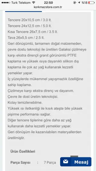 evet doğrudur çoğu büyük markaya ürün sağlıyorlar ürünlerini birebir görme imkanımda oldu benimde çok hoşuma gitti dediğiniz gibi eğer fiyat yüksek diyorsanız bunu da tercih edebilirsiniz yok fiyat önemli değil derseniz korkmazı gözünüz kapalı alabilirsiniz(korkamzın üretimleri kendisine ait)Canım merhaba bence bu kadar para vermene gerek yok. Ben çok benzerini aldım. Oms diye bir marka. Büyük firmaların üretimini bu firma yapıyormuş. Ben daha önce eve granit tenceresini almıştım memnun kaldım çeyizşme de aldım. İçi dışı granit. Seninkine çok benziyor. Eminönü nde mercandan aldım 300tl fiyatıEki Görüntüle 2040667