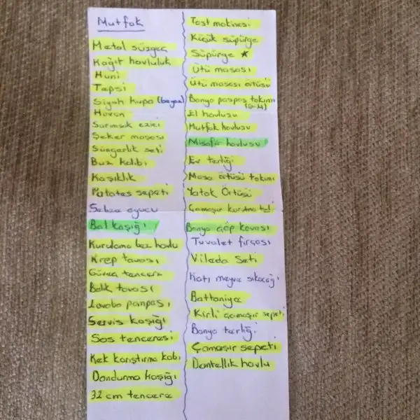 Listemi tabi ki paylaşırım, ben eksiklerime göre liste oluşturmuştum, nette çok daha kapsamlı düzenli listeler var, onlardan da faydalanabilirsin