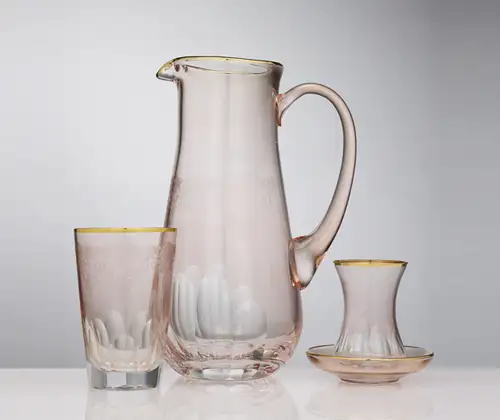 Veya benim favorim... uçuk pembe bir bardak takımı alacaksın, tabaklarının desenleri ile uyum sağlayacak.