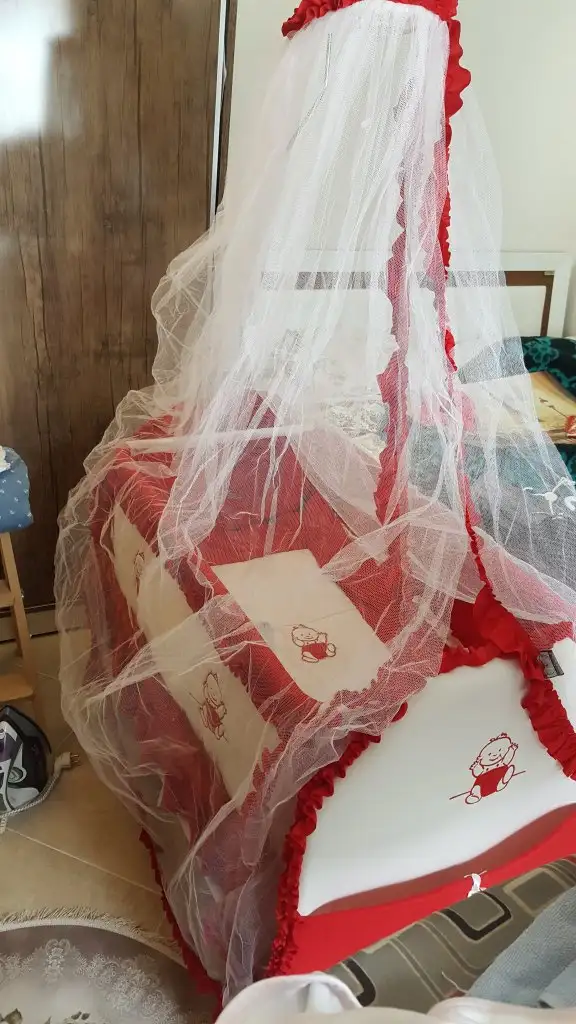 Yer sıkıntısından dolayı cibinligi tam kuramadık birazda kırışık oldu. Ben yanımda yatırmak icin almistim bu besigi kısa süre kullandik sonradan park yatak aldık buna ihtiyacimiz kalmadı. Sallanabilir ( kendiniz salliyorsunuz düğmelilerden degil)