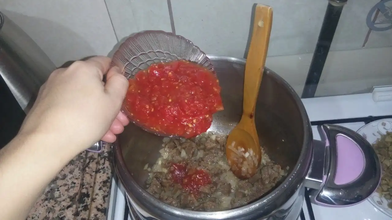 •Rondoda çekilmiş yada rendelenmiş domatesi,salçayı,tuzu,pulbiberini ekleyip biraz kavuruyoruz.