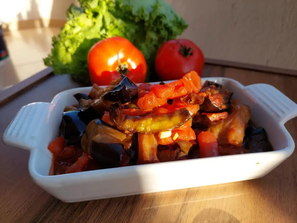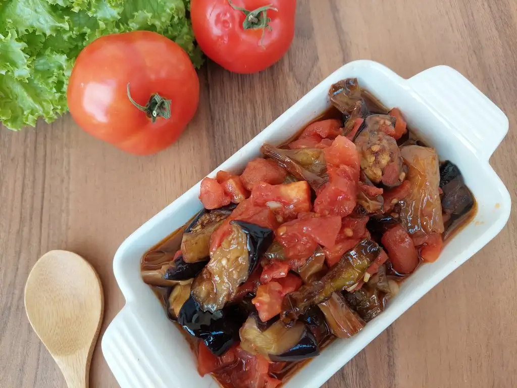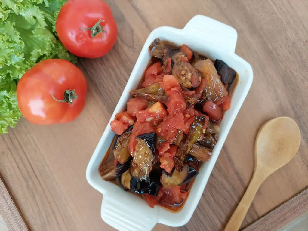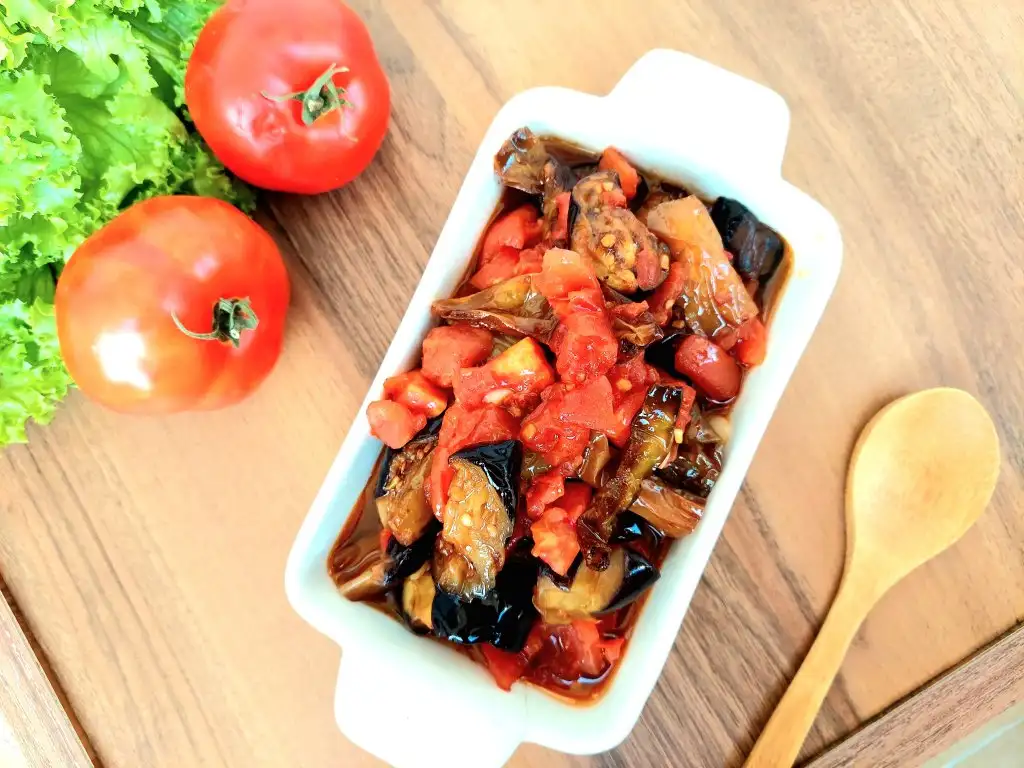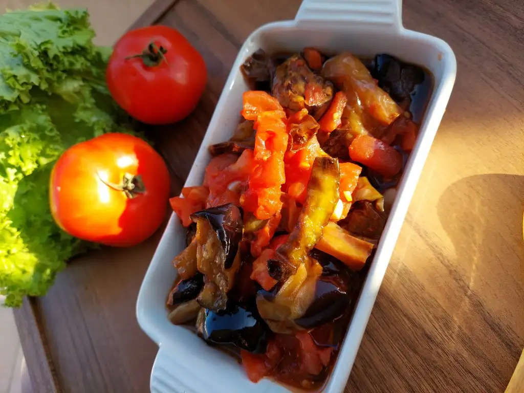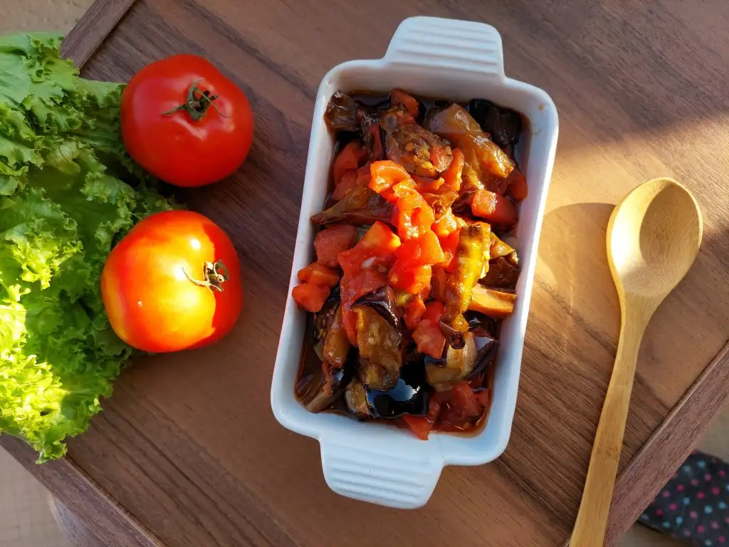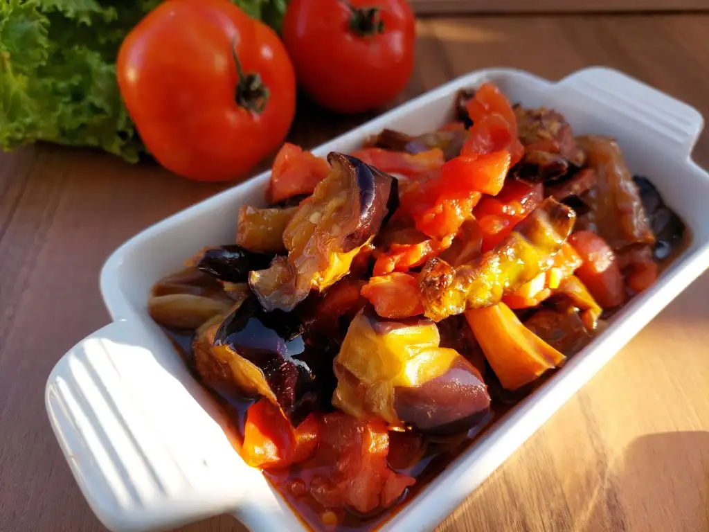 domatesler hafif sulandıgında kizaran patlican biberin uzerine alip biraz malzemlerin birbirine gecmesi icin ocakta 5 ila 10 dk arasi pisiriyorum