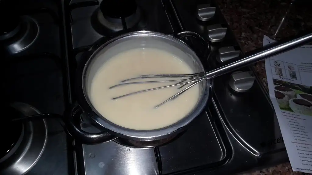 İlk olarak krema malzemelerini pisirip kremayi soğumaya bırakıyoruz