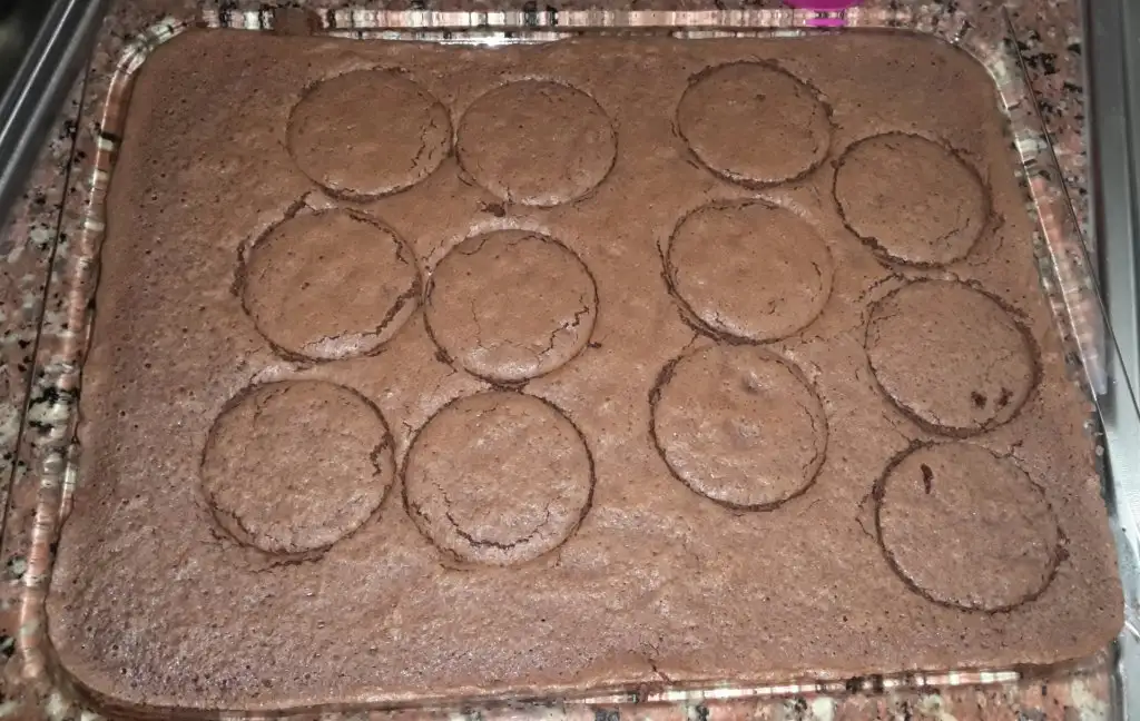 Pandispanyayı fırından alıyoruz ve soğuduktan sonra, yuvarlak bir kalıpla keserek küçük yuvarlak parçalar elde ediyoruz.