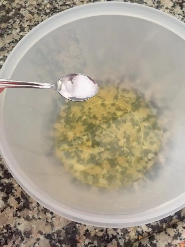 Pastanın kekini hazırlamak için; 4 adet yumurta beyazı, yarım çay kaşığı tuz ve 5 yemek kaşığı soğuk suyu ilave edin.