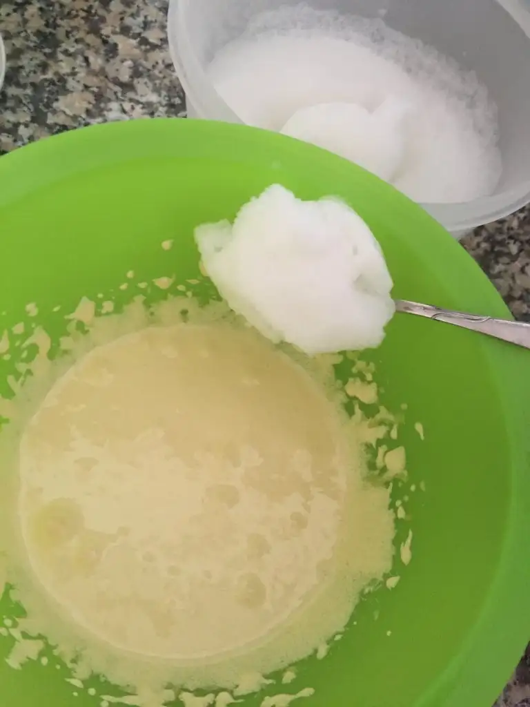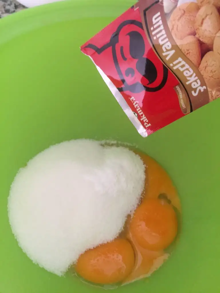 Yumurta sarılarının üzerine geriye kalan toz şekeri ve vanilini ekleyip, yumurta sarılarının rengi açılana ve şeker eriyene kadar çırpın.