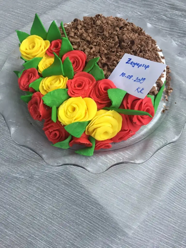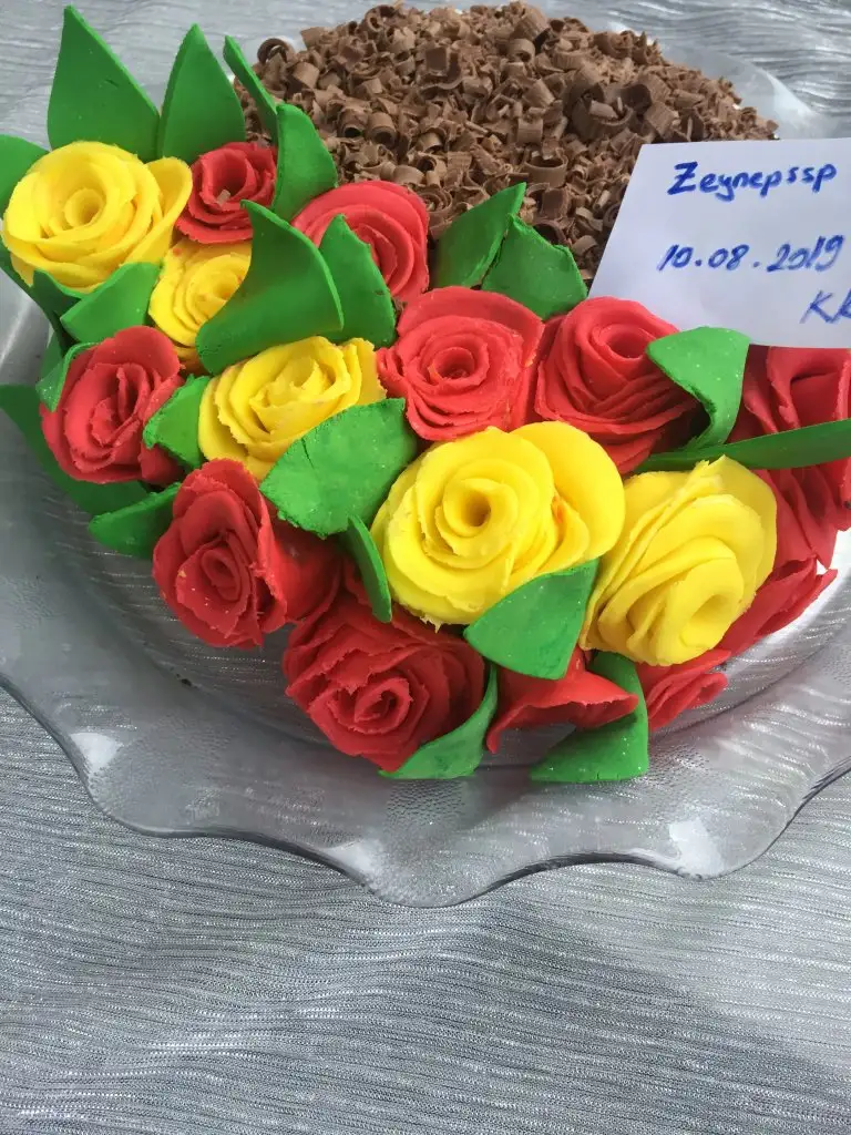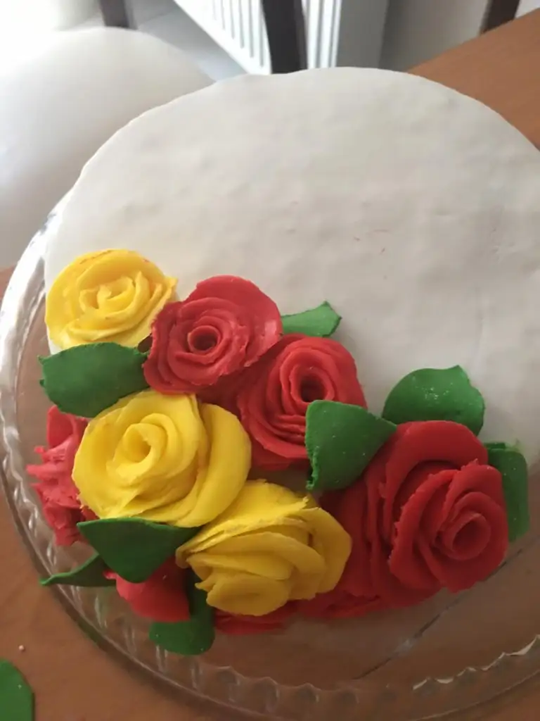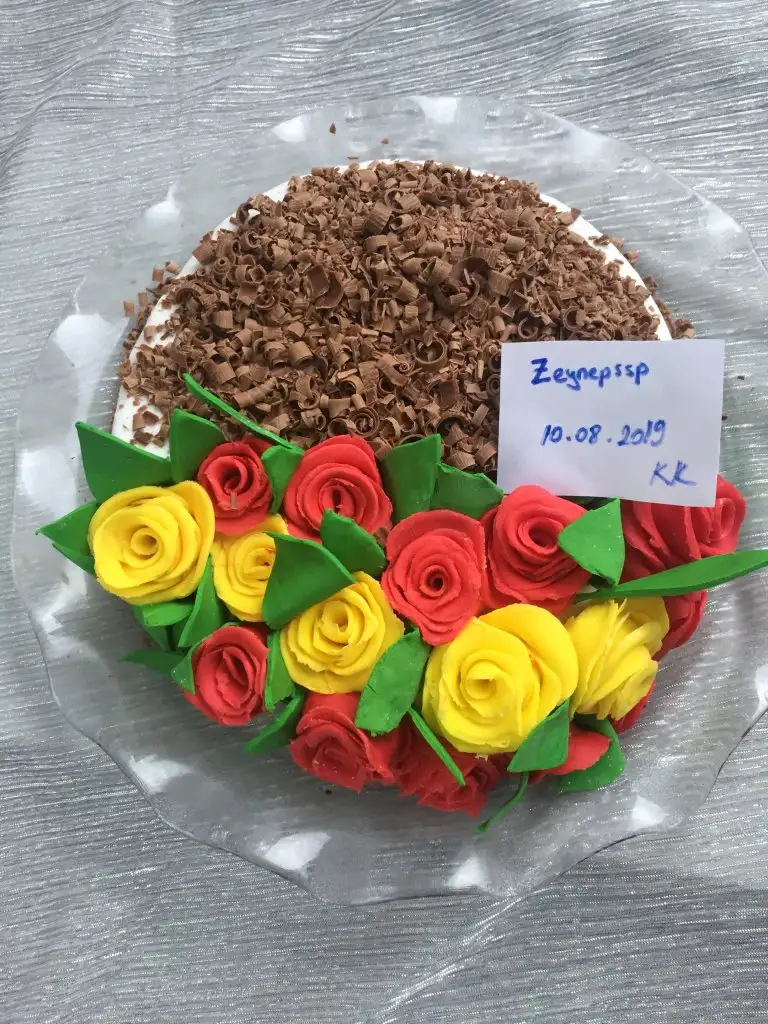Mikser yardımıyla iyice çırpın ve pastayı hazırlayana kadar buzdolabında bekletin.Hazırladığımız pandispanyanın üzerine kremayı sürerek pastamızı hazırlıyoruz ve süsleme işlemine geçiyoruz.