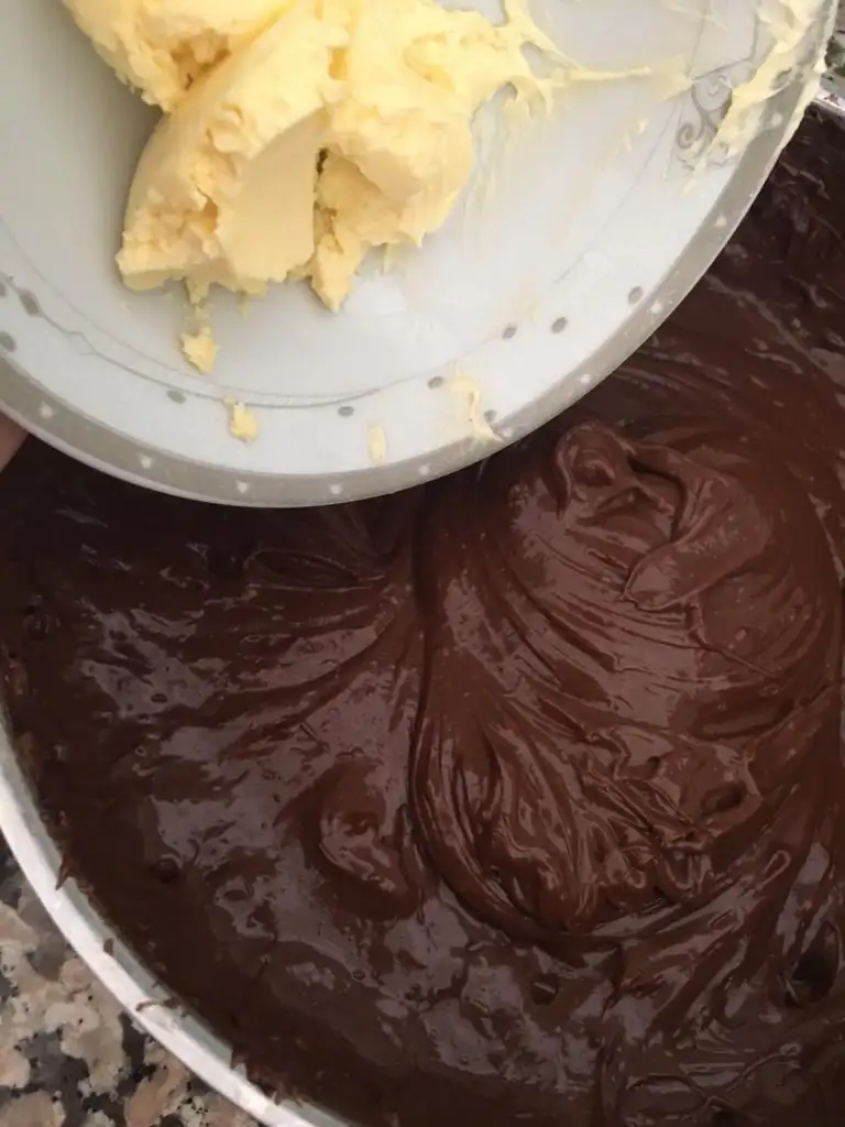 Oda sıcaklığında soğumuş olan pasta kremasının içerisine 200 gram tereyağını ekleyin.