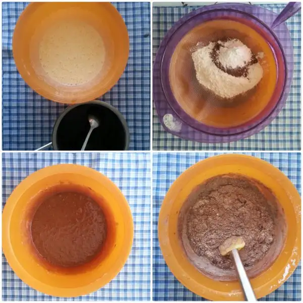 Soguyan cikolatali karışımı yumurta ve şekerli karışıma ekleyip mikserle karistirmaya devam edelim.