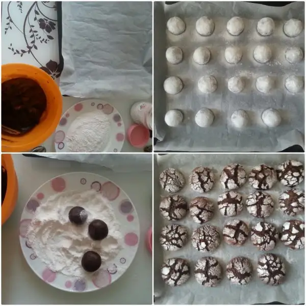 Dinlenen hamurumuzu dolaptan çıkartıp. Bir kasik yardimiyla ceviz büyüklüğünde parcalar kopartalim ve yuvarlayalip her tarafini bolca pudra sekerine buladiktan sonra tepsiye dizelim.