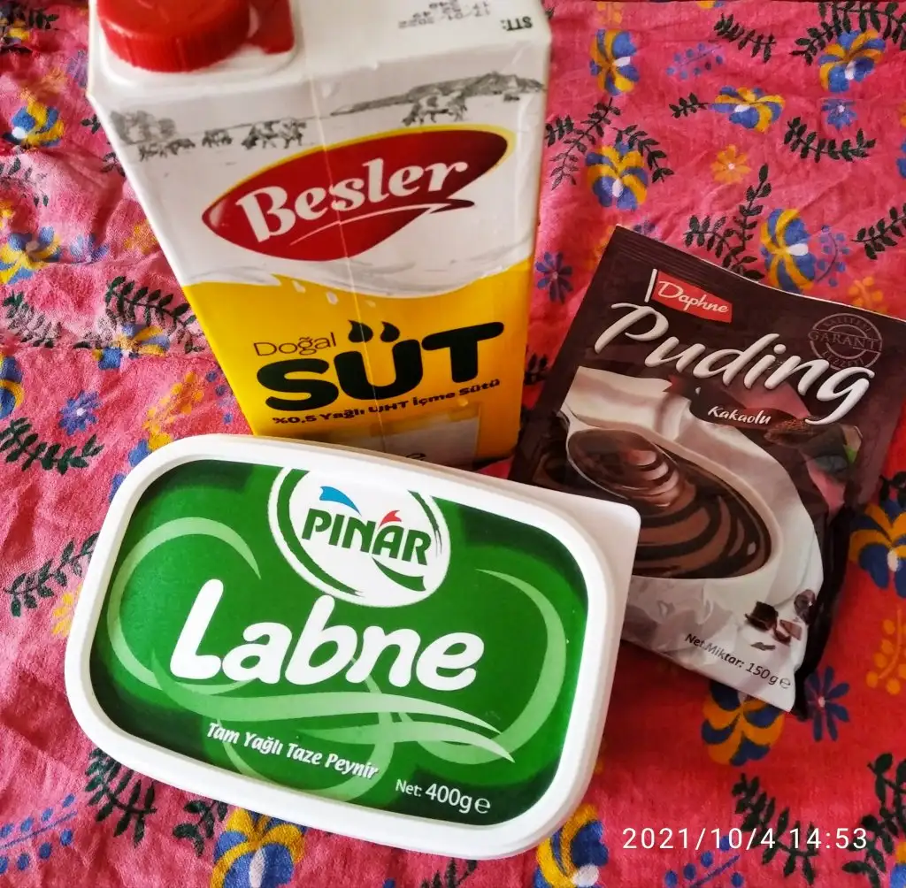 Eki Görüntüle 2928033 Pudingimizi ocakta karıştırarak pişiriyoruz ve ocaktan alıp içerisine 1 kaşık "Pınar Labne"ekleyip karıştırıyoruz. Soğuması için buzdolabına koyuyoruz.