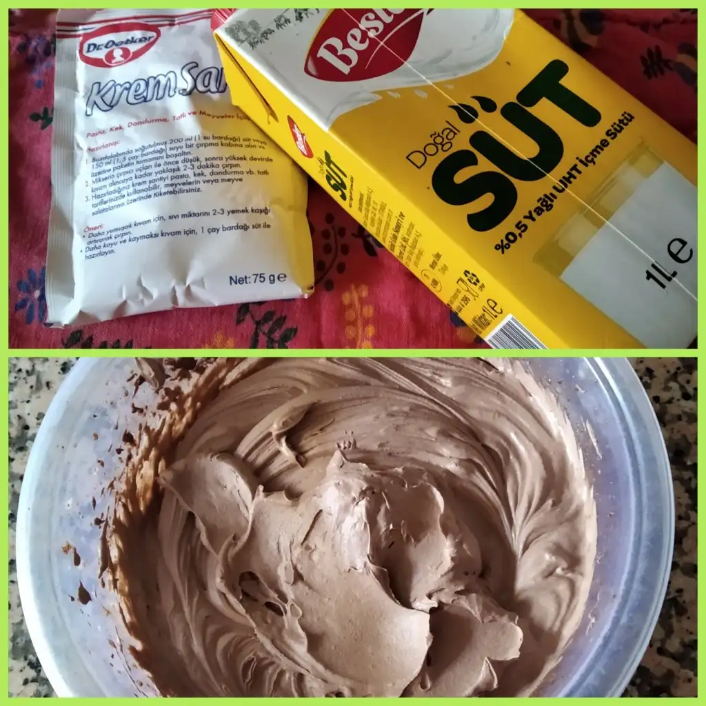 Eki Görüntüle 2928036 1 su bardağı süt ile mikser yardımı kullanarak çırpıyoruz ve dolaba koyuyoruz.