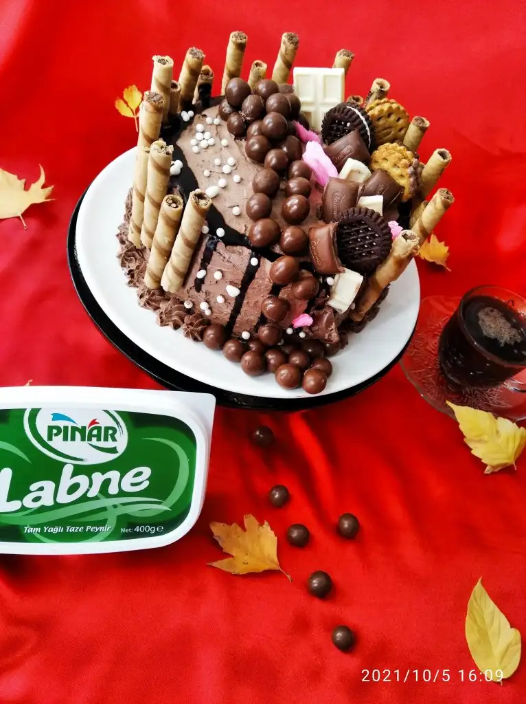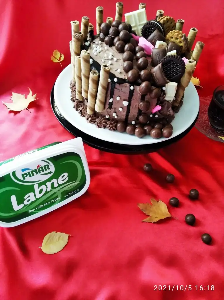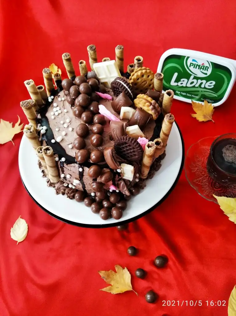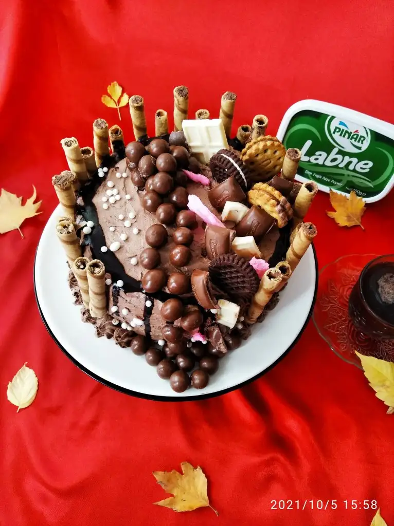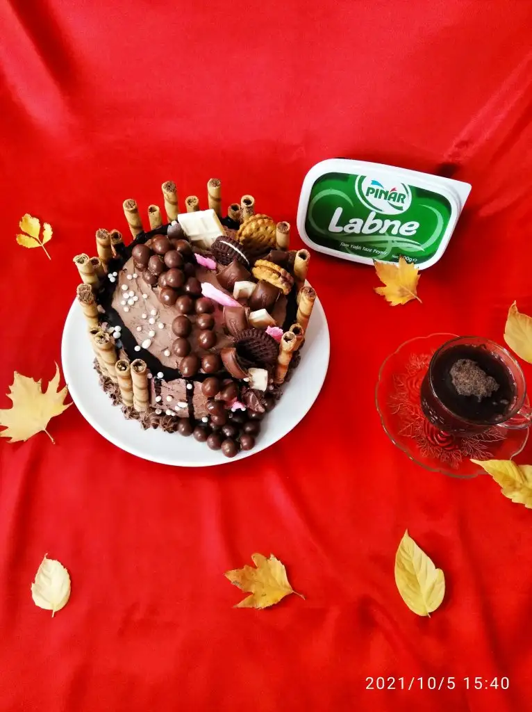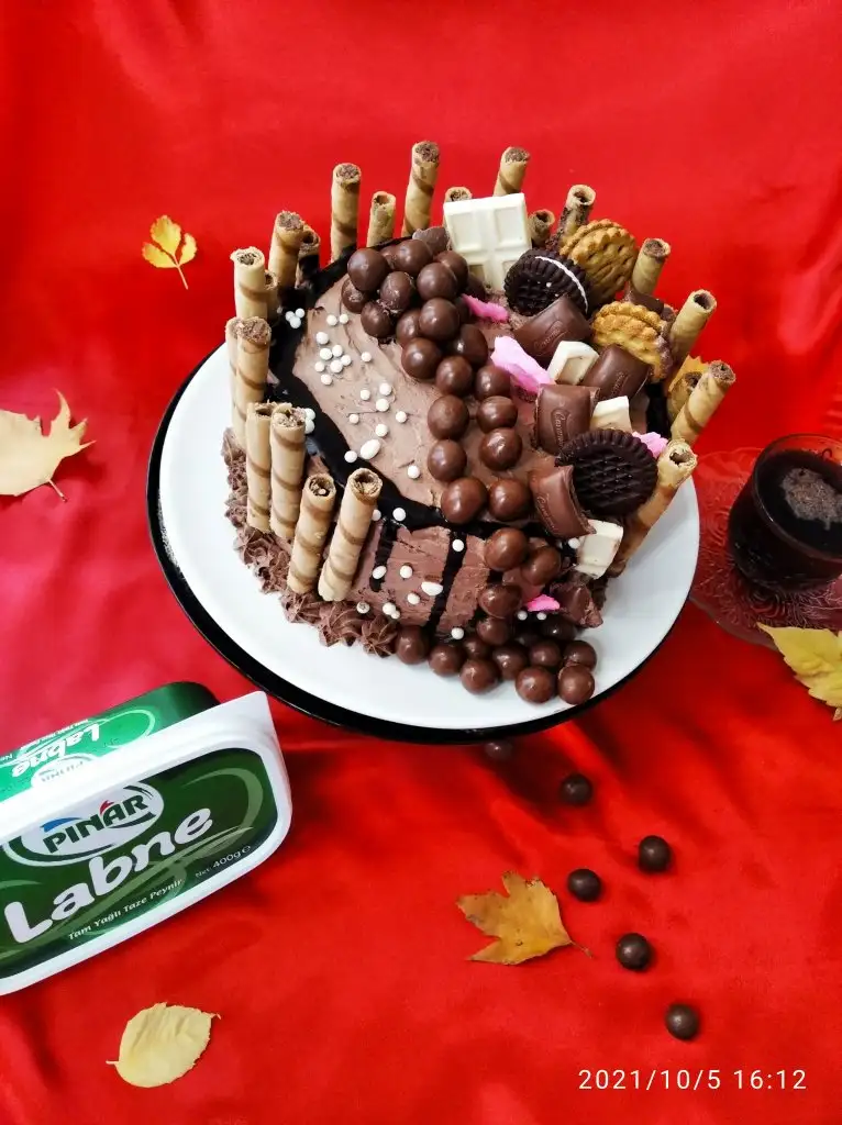 2.pandispanyamızı üzerine kapatıyoruz ve onunda üzerine kakaolu pudingimizi sürüp beyaz küçük çikolatalardan serpiyoruz .Bu şekilde 4 kat yapıyoruz ve üzerine kakaolu kremşantimizi ve çikolata Sosumuzu ilave ediyoruz ve süslemeler 🙃.
