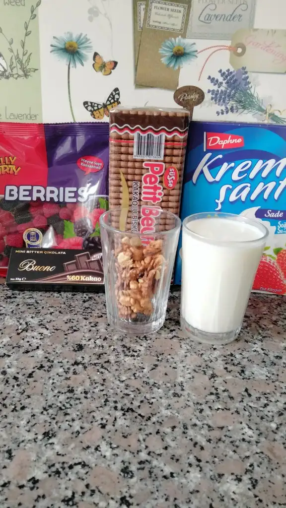 Ben bisküvi, ceviz ve kremşanti kullandım.