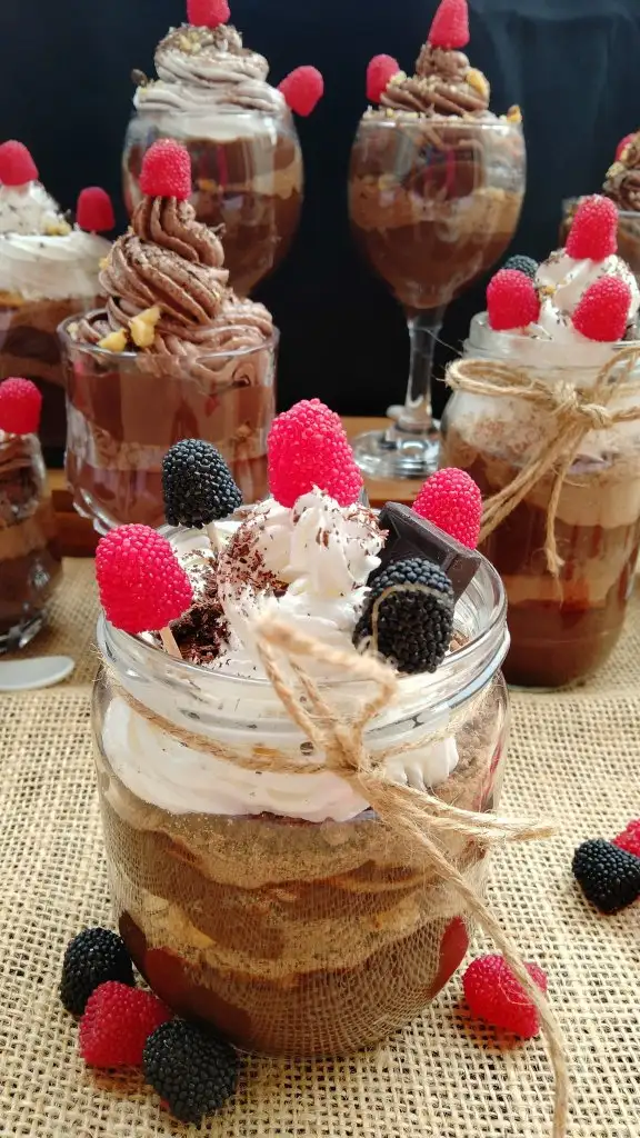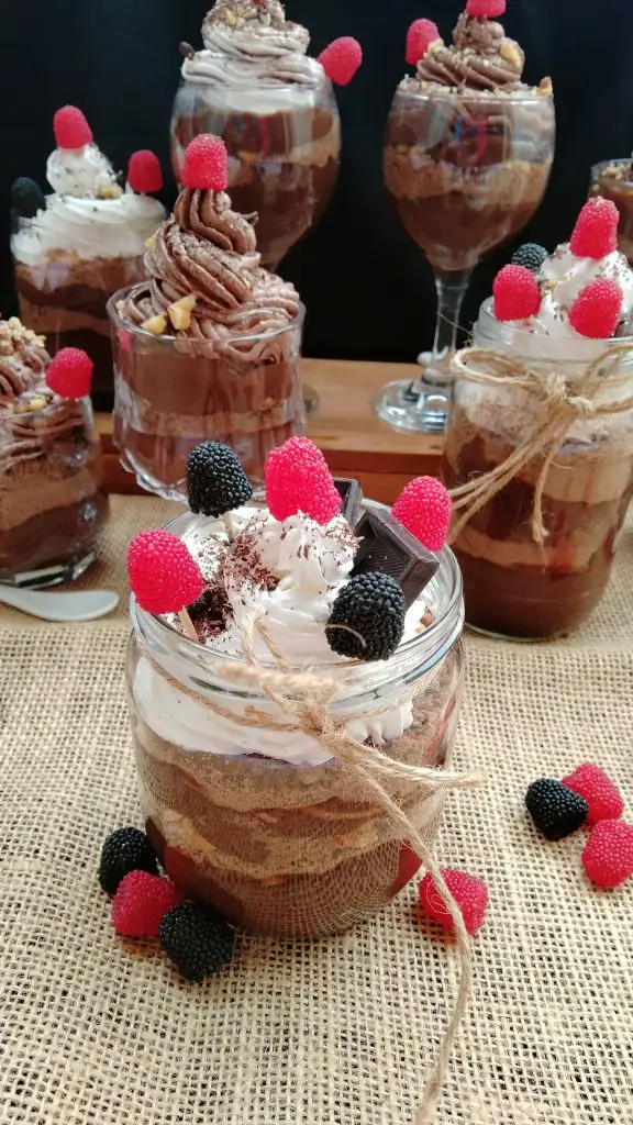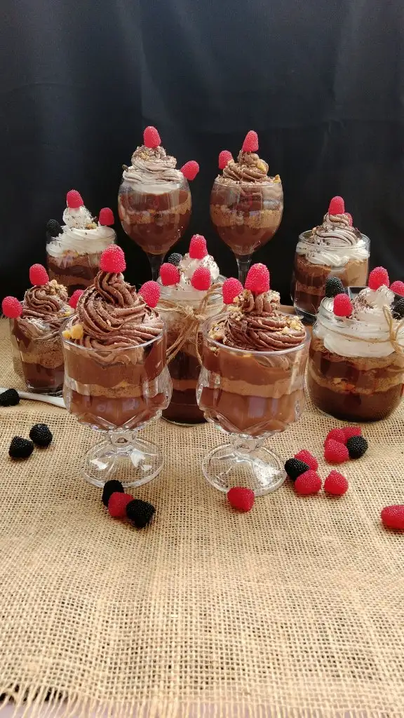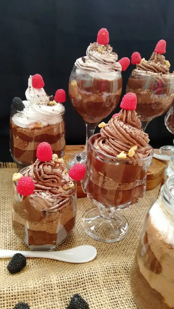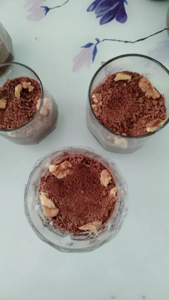 Bardağa koyduğumuz pudingimizin üzerine bisküvi ve ceviz koyup tekrar puding koyuyoruz.