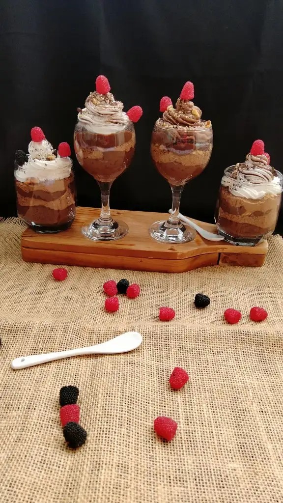 Üzerini ceviz, orman meyvesi jelibon ve çikolata rendesi ile süslüyoruz.