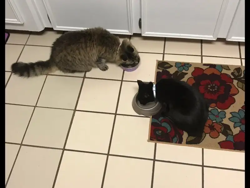 Büyük kedim çok yiyor bıraksam ayda 10 kilo tek başına bitirir. Doktoru da mamayı azaltmamızı söyleyince ben günde 2 defa veriyorum ara ara da diğer kedim zaten bırakıyor diye onun kalan mamalarını da yiyor :)