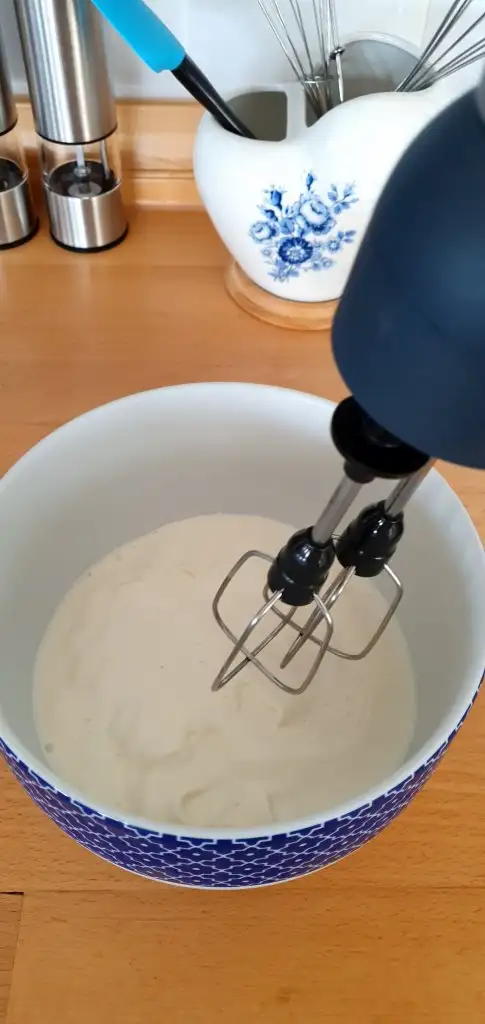 Buzdolabında soğutulmuş kremayı katı kıvama gelene kadar çistiyoruz.