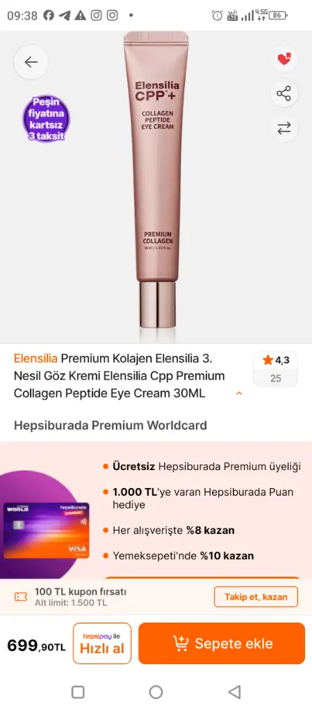 Çok uygun değil önereceğim krem ama güzel bir kremdir Kore markasıdır sürme aparatı camdır ve gümüştür peptitli bir göz kremidir çok amaçlı kullanılıyor nazobial çizgilere falan da kullanabilirsin kuvamı yoğun muhteşem kokusu olan bir kremdir