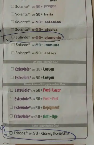 Tamam canım uygun yerlerde bulalım ben bir yer buldum dün ama güvenemedim sonuçta internet ortamı.daha önce alışverişte yapmadım yani.ucuz ama tarihi geçmiş olabilir diye bilemedim.http://molinza.com/solante-pigmenta-spf-50Bu arada solente kremi bende alacağım. Araştıralım doktorun verdiği solentanın çeşitleri var bana işaretlemişti iki tane onun resmini yükleyeceğim size..