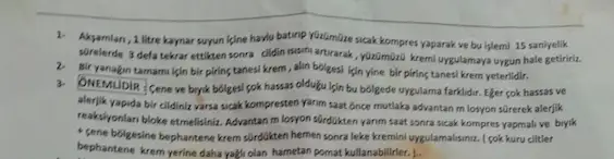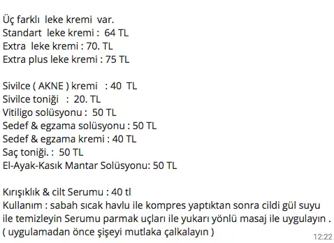 Ben de öğrenebilir miyim nasıl sipariş etcez tesekkurler simdidendoğumdan sonra yüzümde dudak üstü ve yanaklarımda lekeler oluştu.şu son sıcaklarla lekeler iyice koyulaştı.koruma faktörlü kremlerde hiç işe yaramıyor.pek çok arkadaşımda aynı dertten muzdarip.avon un vichy nin ürünlerini kullandım ama hiç bir sonuç alamadım.klubümüz üyesi bir arkadaşın tavsiyesi ile bir ürün aldım.cildim inanılmaz bir şekilde yenilendi.lekelerim pırıl pırıl oldu.filiz hanım sayesinde bu ürünle tanıştığım için kendisine de bir teşekkür mesajı yazdım.filiz hanımın verdiği telefondan sinop taki eczaneye ulaştım ve ürününden sipariş ettim.iyi ki etmişim.çok mutluyum...