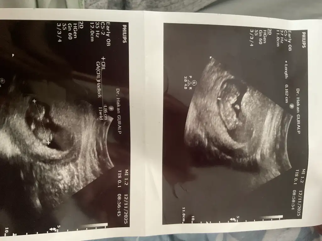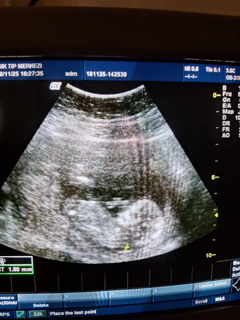 Bebek yana yatmış, bacakların arasındaki çıkıntı (nub) omurga hattına çok paralel duruyor.