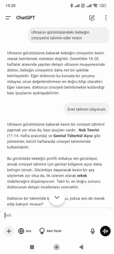 Sizin bebeğe de erkek diyor chat gpt.
