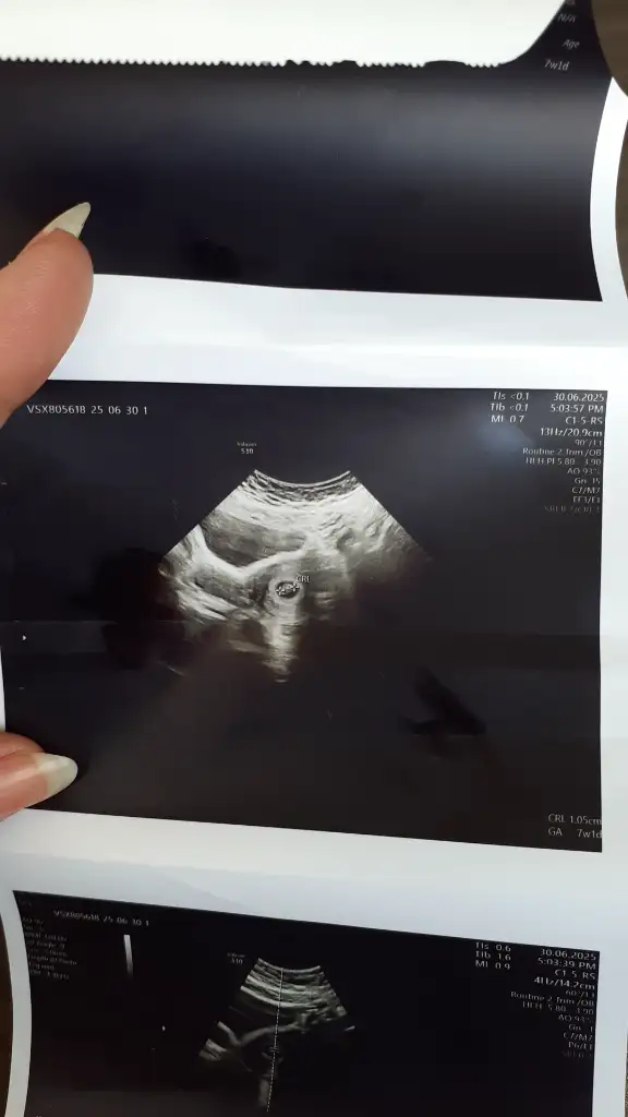 Merhaba ilk resimde 5 haftalık kesem ikinci resimde 7 hafta 5 günlük gebeyim cinsiyet tahmini yapabilecek kimse varmı çok merak ediyorum