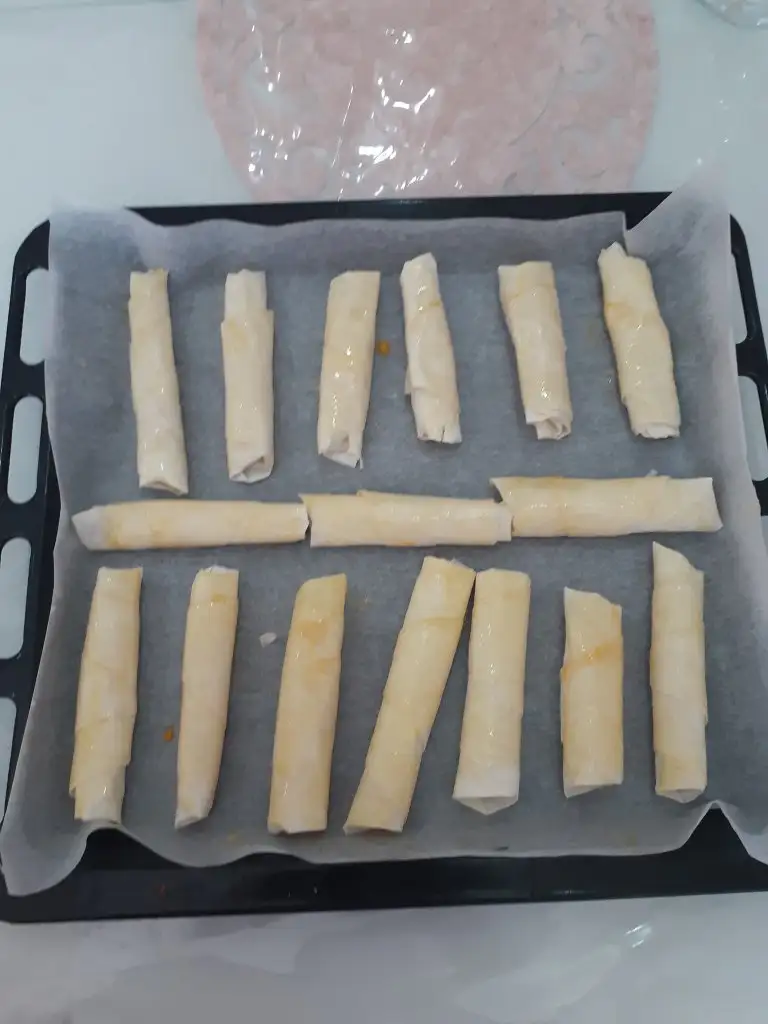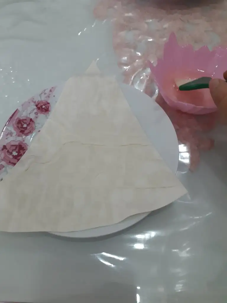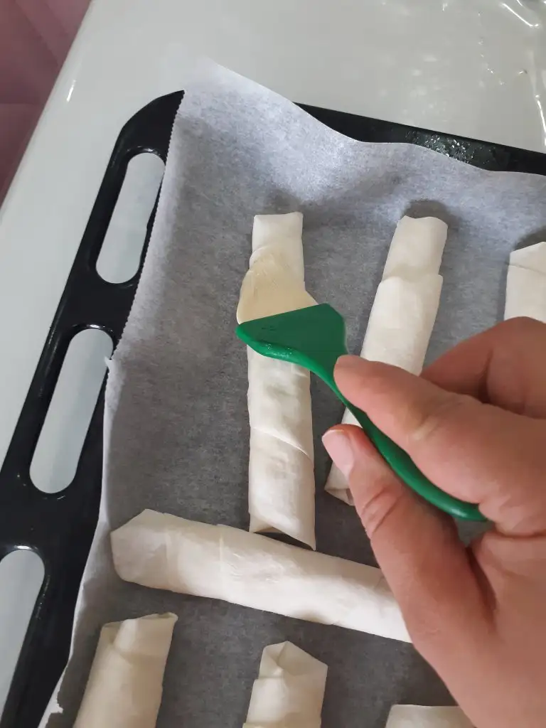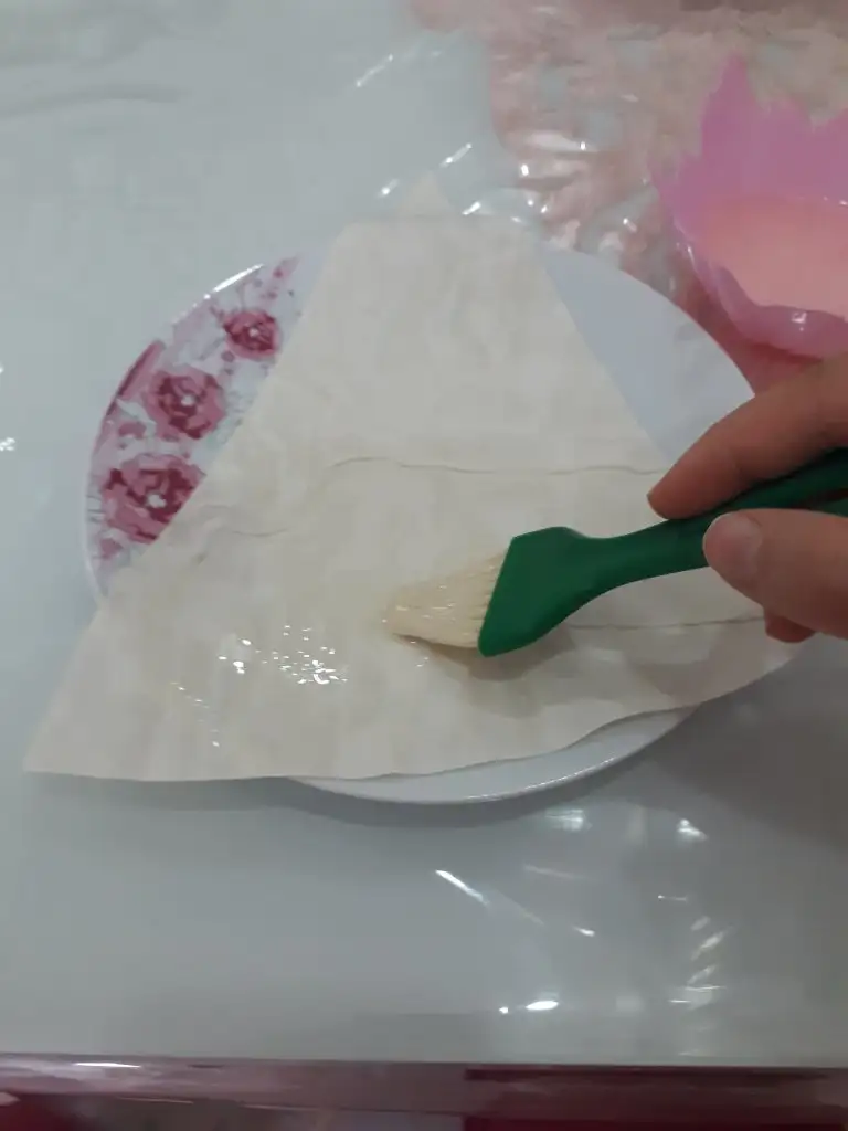 Yufkanın bir tanesini alıp icine fırça yardımıyla aycicek yağı sürelim.
