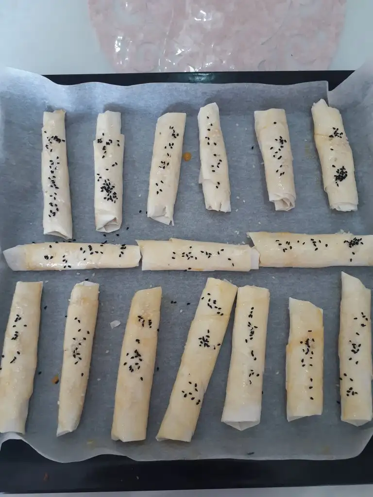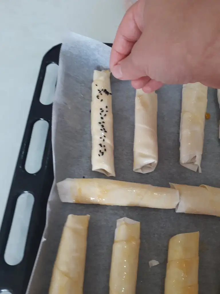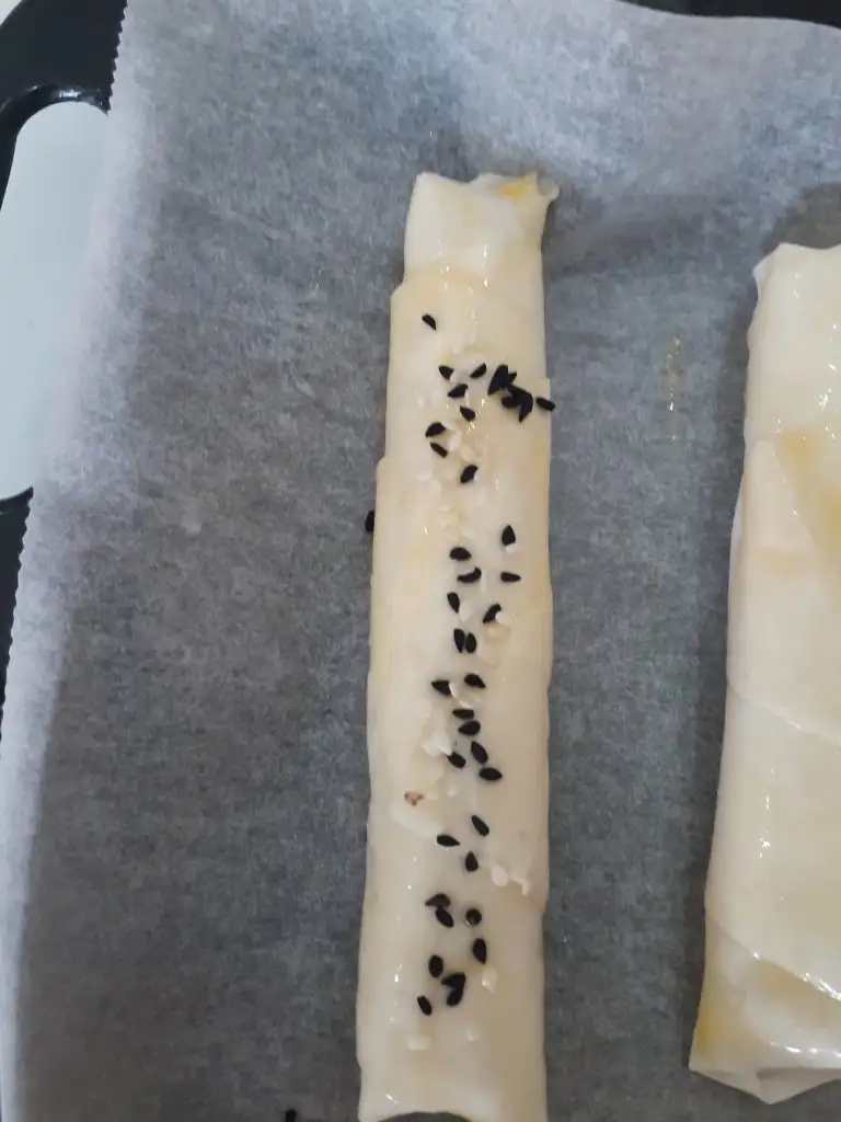 Böreğin üzerine sürebilmek için 1 yumurta. Süsüne susam ve çörek otu.