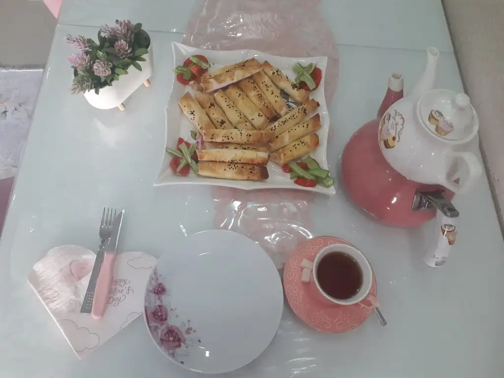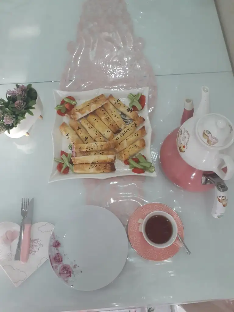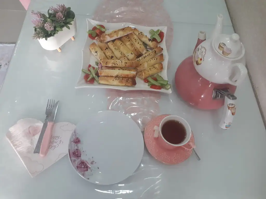 Sizlere günlük zamanlarda , özel günlerde etkinlik gün toplantıları gibi günlerde de çok sevilen beğenilen sıcak çayın yanında sıcak böreğin birbirini tamamladığı bir tarifle ve sunumla geldim.
