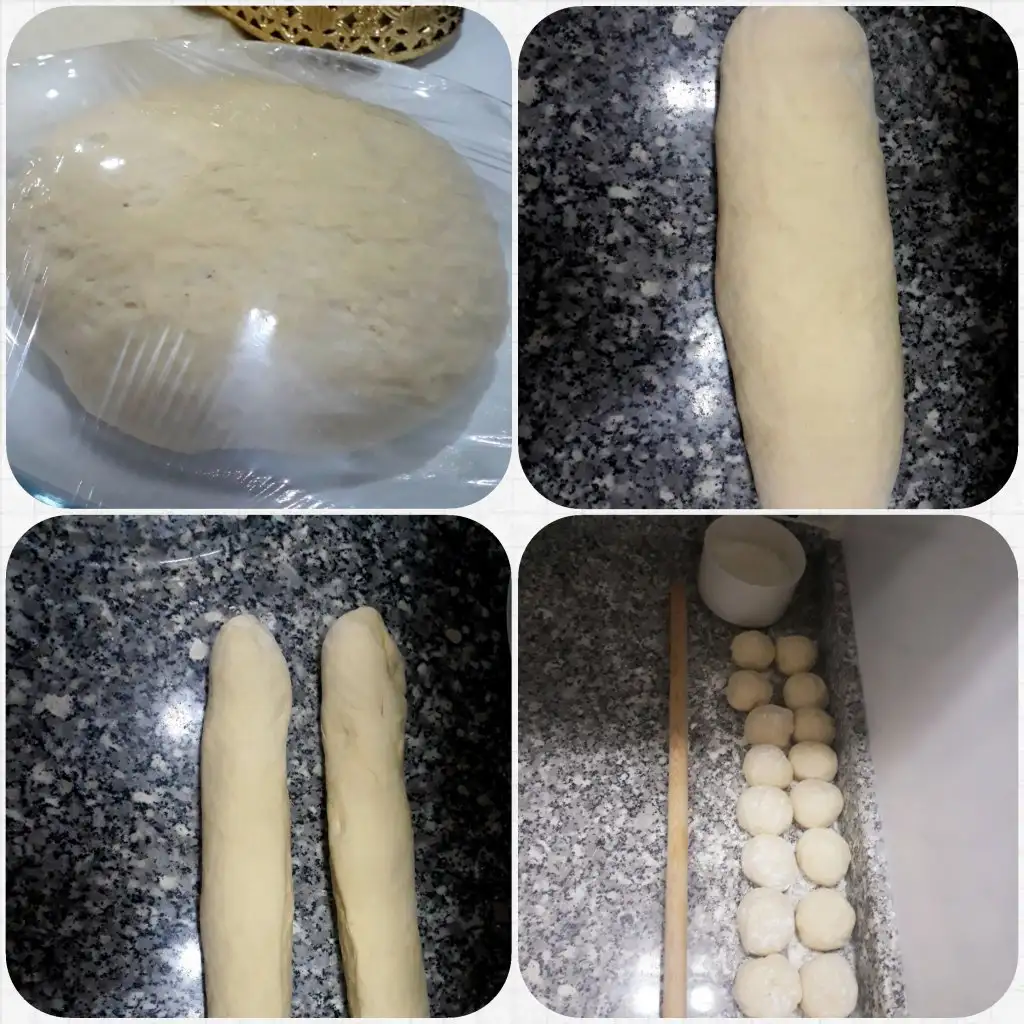 ✴Yoğurmuş olduğumuz hamurumuzu 30 dakika boyunca ılık bir ortamda mayalanmaya bırakıyoruz. Mayalanan hamurumuzu havasını alıp ortadan ikiye ayırıyoruz 18 parça hamur elde ediyoruz. ✴
