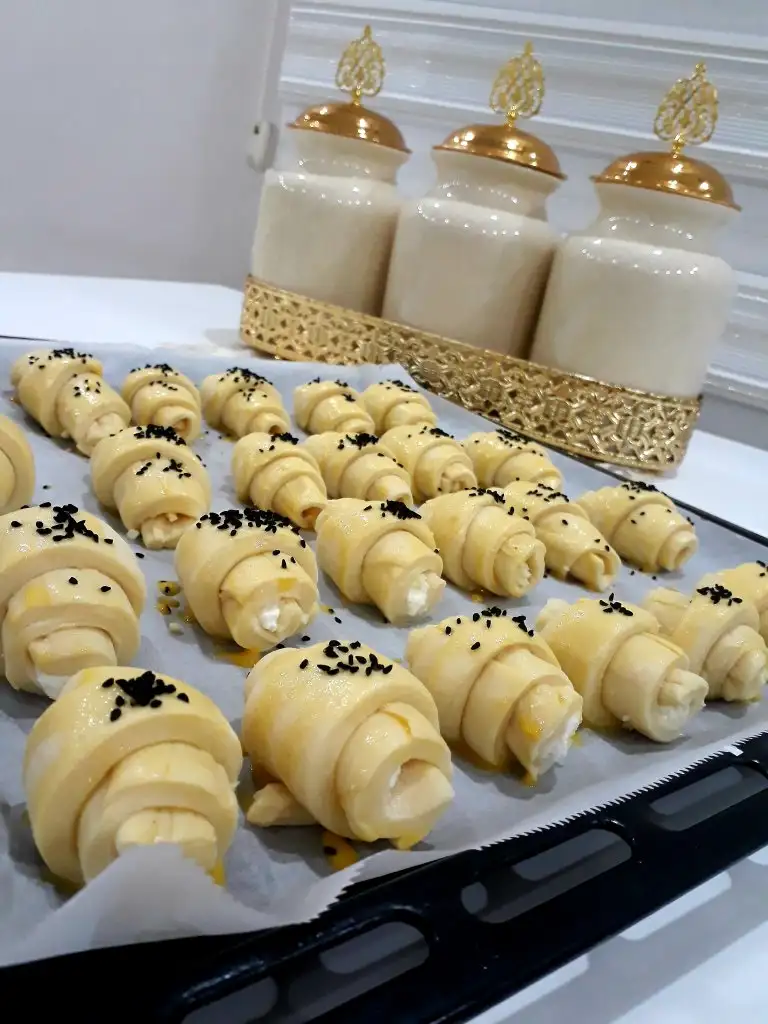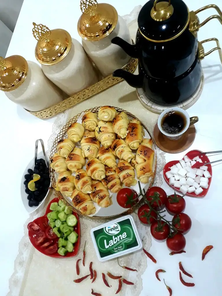 labneli iç harcımızı uç kısımlarına ekleyip hamurumuzu saŕıyoruz kruvasan şeklinde