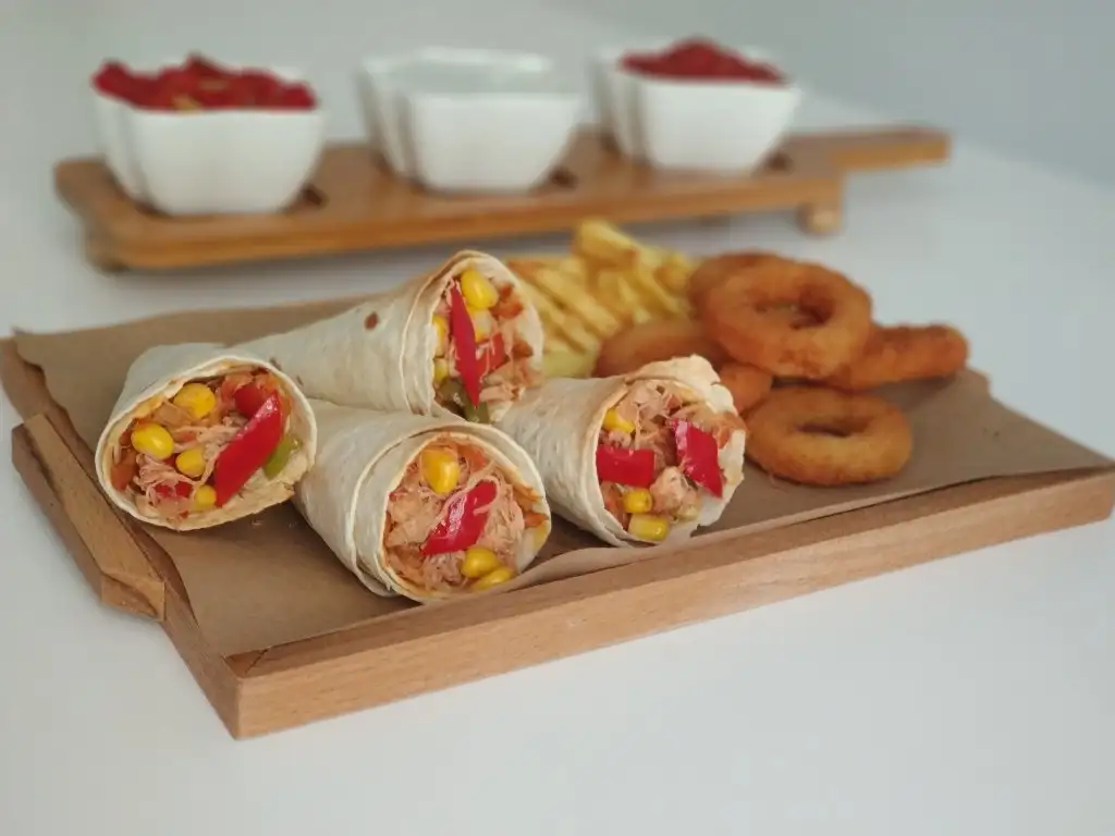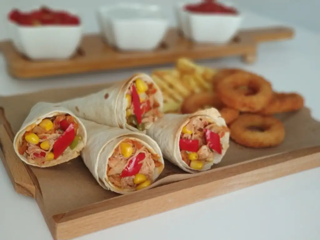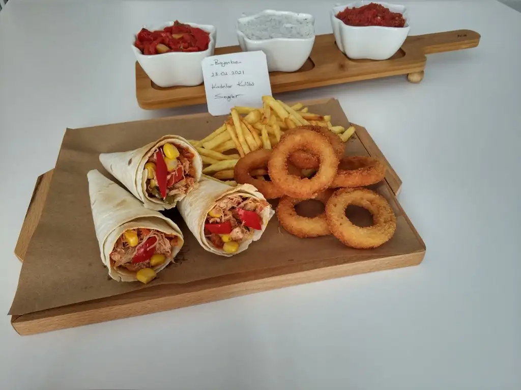 Daha sonra lavaşları ortadan 2ye bölüyoruz ve kıvırarak külah şekli veriyoruz. Alt kısmındanda kürdanla sabitliyoruz külahın açılmaması için.