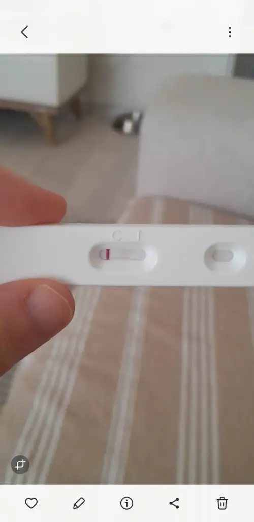Arkadaşlar az once test yaptim ilk dakilarda bir sey yoktu sonra boyle oldu bu cizgi mi 1 saattir ayni duruyor gecikmenin 8.gunu 5.gun negatifti kan