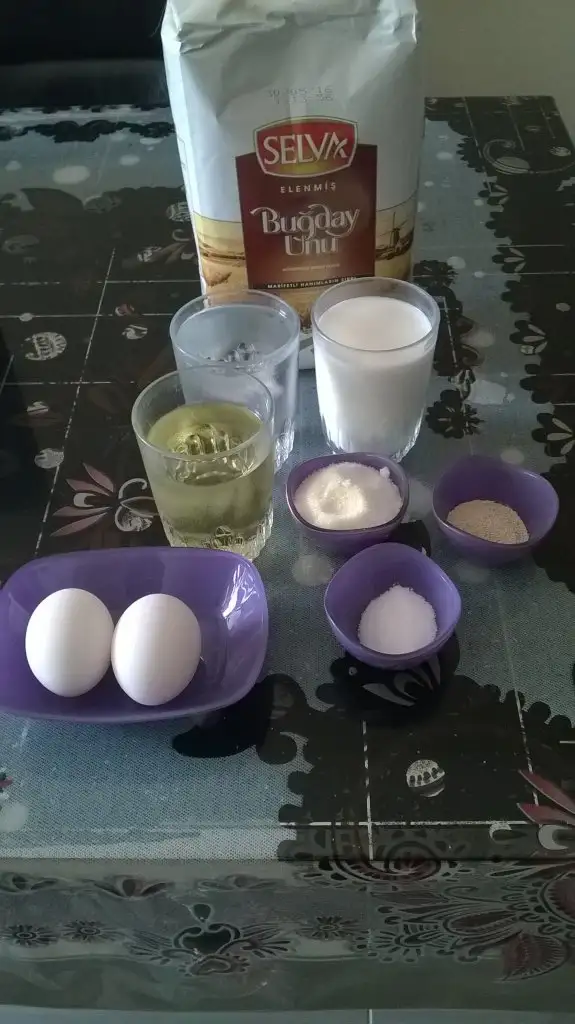 daha sonra yağ, yumurta, tuz ve un ekleyip, hamurumuzu kulak memesi kıvamında yoğuruyoruz.
