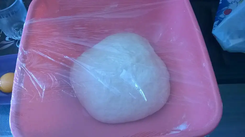 daha sonra hamurumuzun üzerine streç sararak kabarıncaya kadar mayalamaya bırakıyorum.