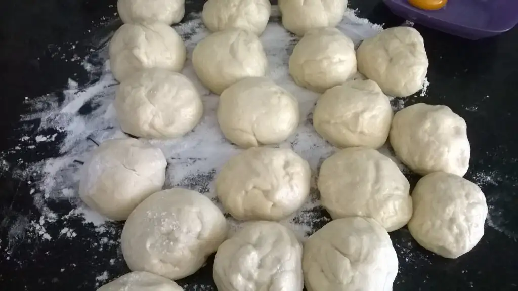 hamurumuz mayalandıktan sonra mandalina büyüklüğünde bezeler yapıyoruz.
