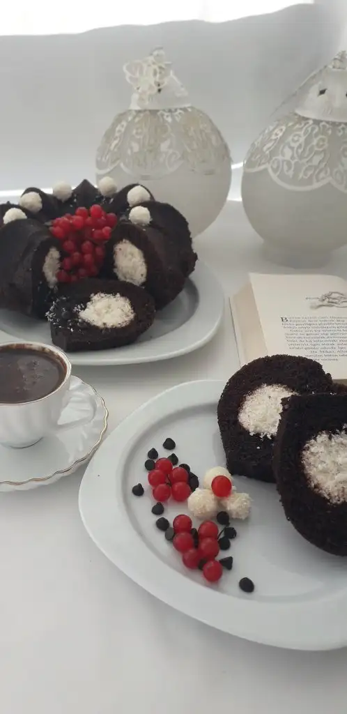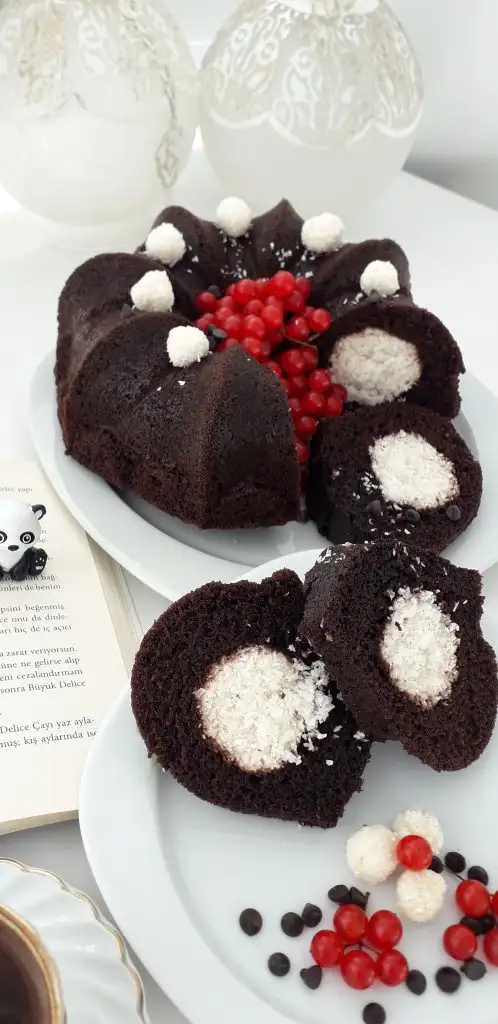 pişen keki ilk sıcağı çıkınca kalıptan çıkarıp servis ediyoruz Afiyet olsun
