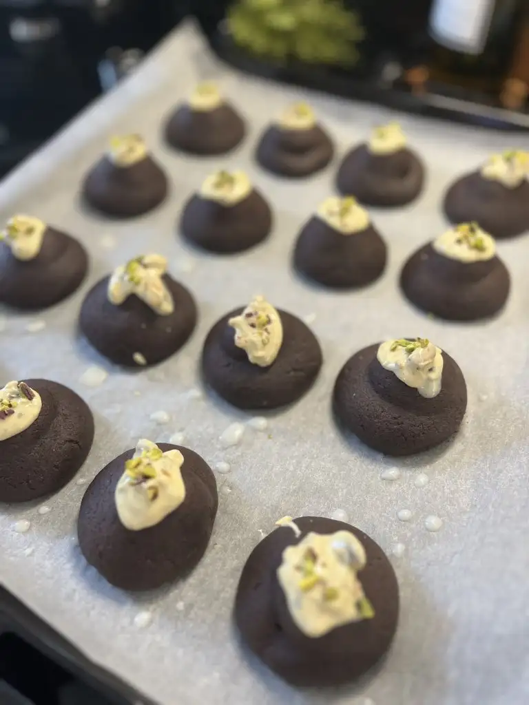 - 180 derecelik fırında kontrollü pişirelim. Eki Görüntüle 3475715 Eki Görüntüle 3475716 Pişen kurabiyeleri 10 dakika bekletelim.