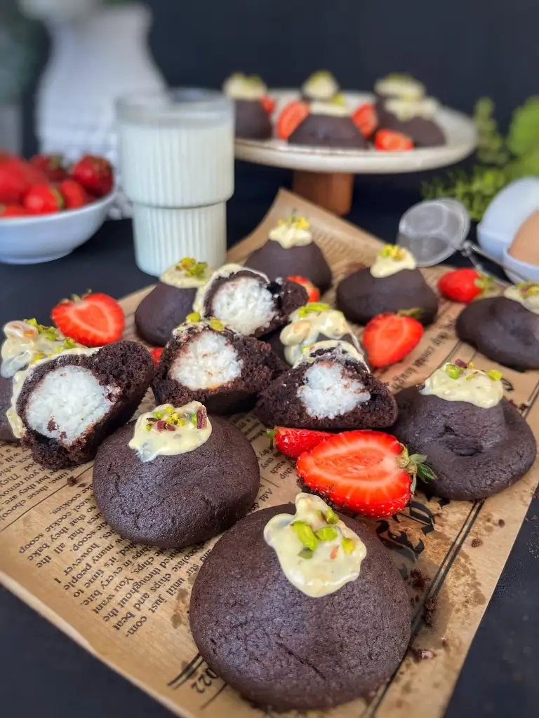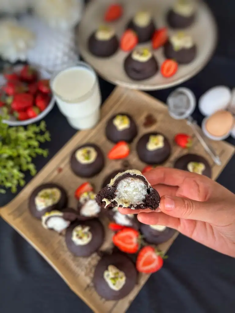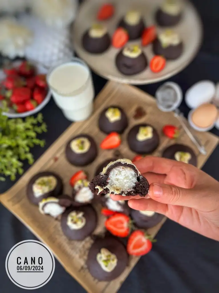 - İçine hindistan cevizi toplarından 1 tane koyup uç kısımlarından birleştirelim. Eki Görüntüle 3475713 Bastırmadan yuvarlayalım.Eki Görüntüle 3475714