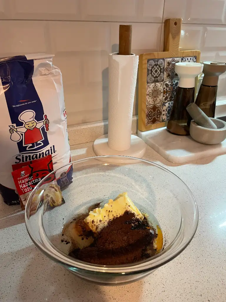 un, kabartma tozu ve vanilyayı da ekleyip homojen olana kadar yoğuralım.