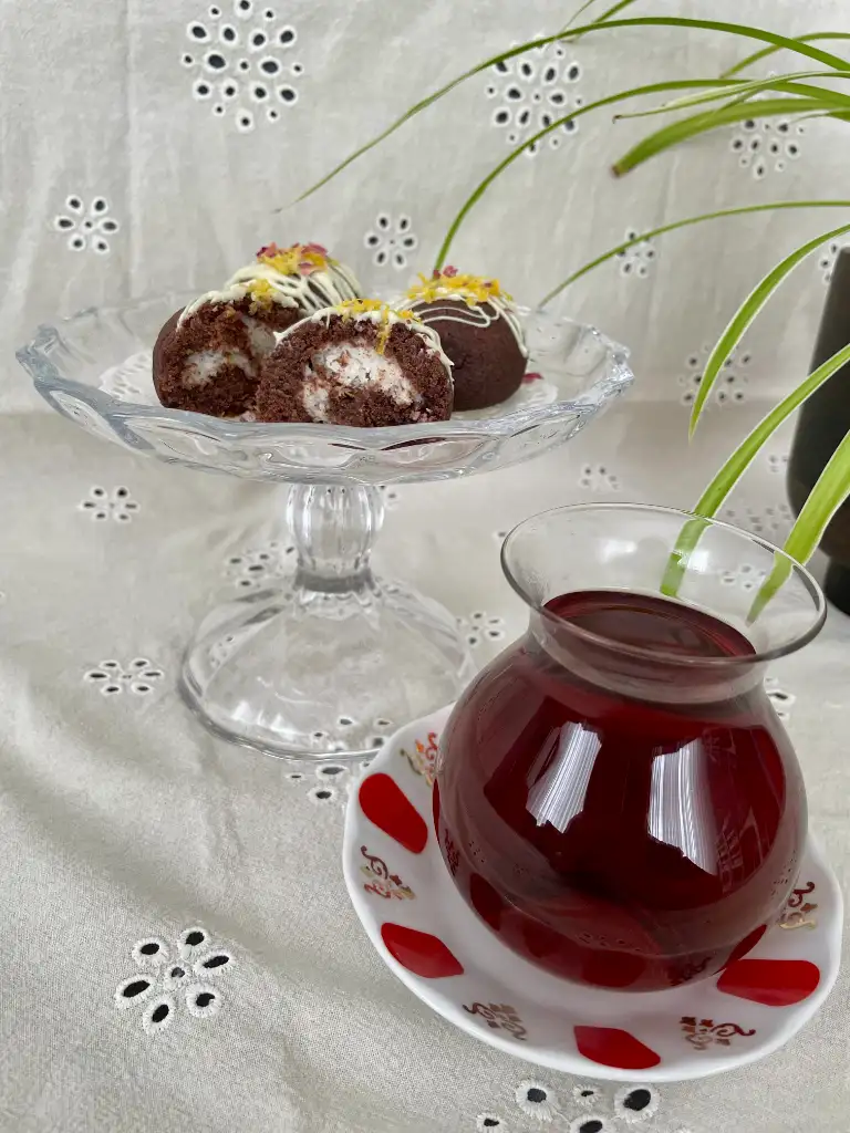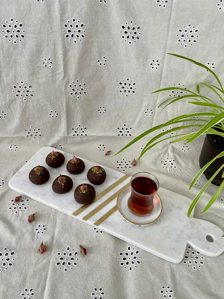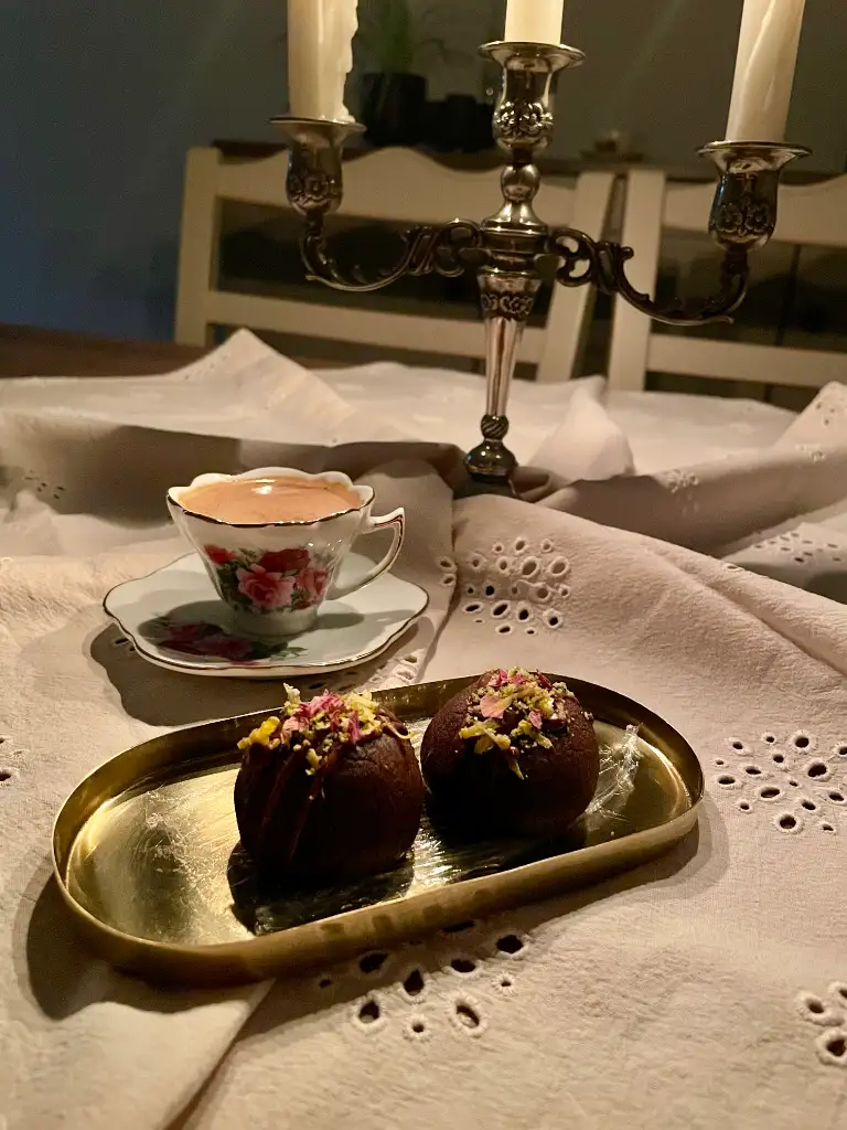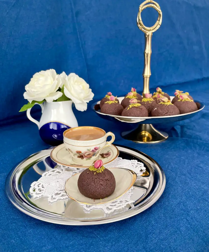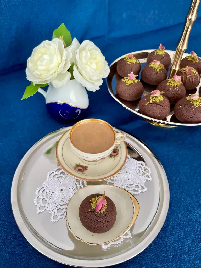 daha sonra kurabiye hamurundan ceviz büyüklüğünde parçalar koparıp içli köfte yapar gibi ortasını açıp içine hindistancevizli harçtan koyup kapatıyoruz.