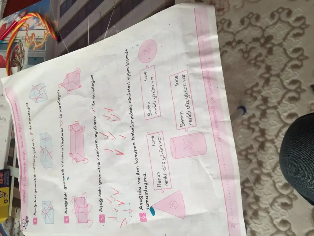 Geçmiş olsun.zaten yeni başladılar evde de ilgilendigin için hemen anlamıştır zatenBizde aynı konulardayız. Köşe , ayrıt, yüzey... Bizde kardeşlerinin şekilli ahşap bloklarının üzerinden çalışıyoruz üçgen prizma, dikdörtgen , küp vs. vs. Maalesef okulun ilk günü kızım hastalandı, sadece iki gün gidebildi. O yüzden tam peliştiremedi bazı şeyleri.