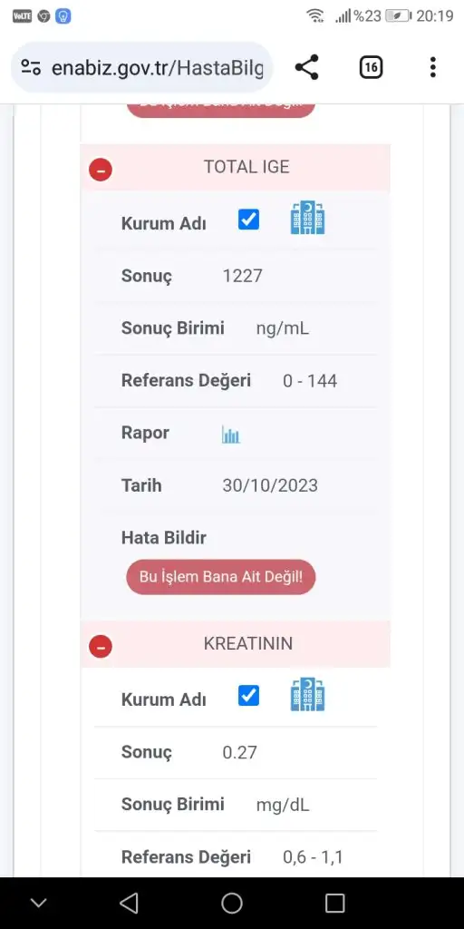 lütfen biraz konum burada kalsın. ben astım hastasıyım şu an nefes alamıyorum üstüme bir şey çöktü sanki. kızımın tahlili. 18 aylık. bu sonuç neden bu kadar yüksek. Rabbim korusun onunda mı astım riski var. bilgisi olanlar lütfenn yazsın.