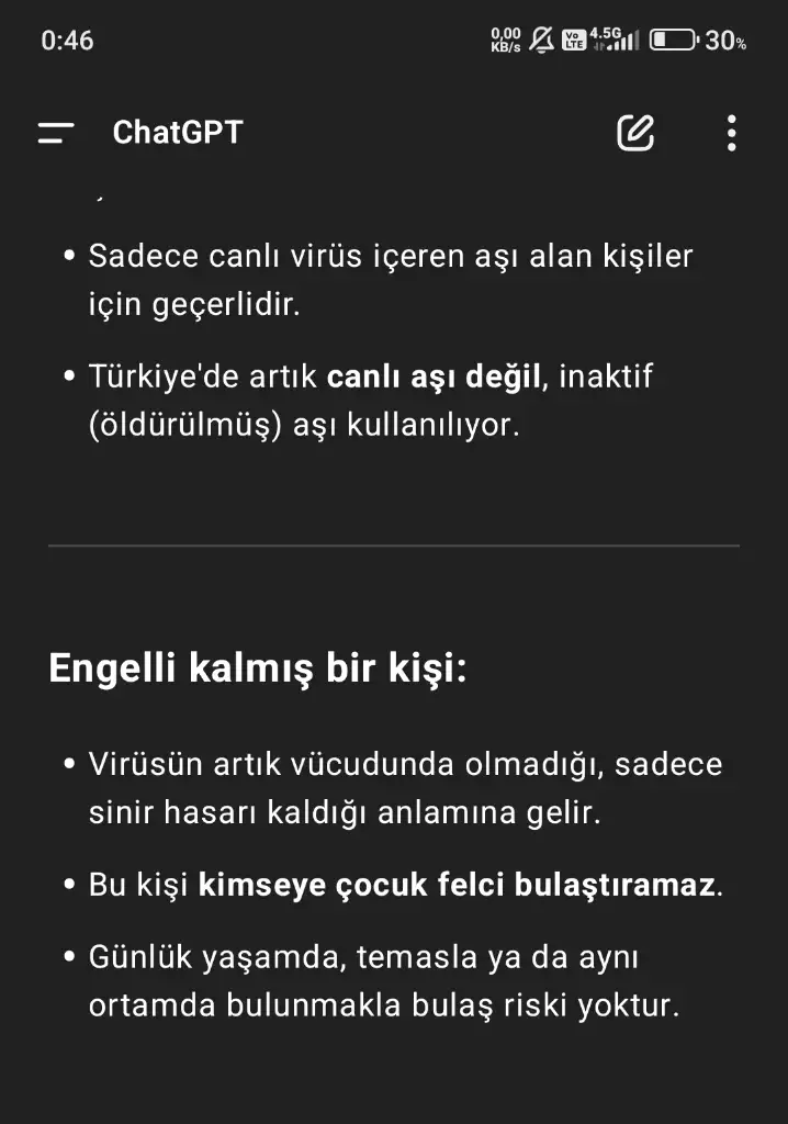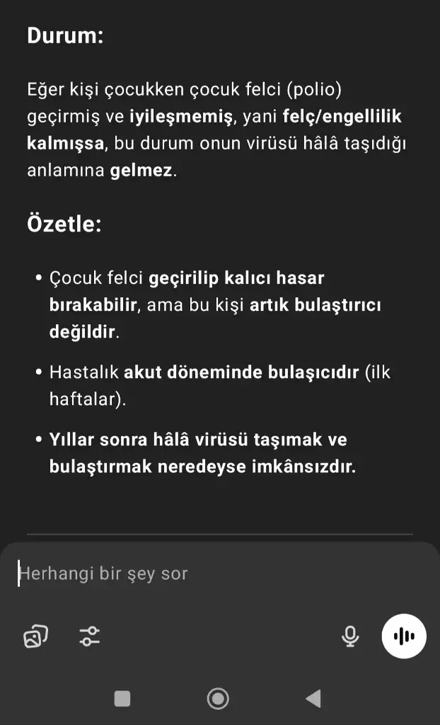 Doktor değilim,paramediğim (112) Bulaşma ihtimali yok, istersen bi doktorada sorabilirsin içini rahatlatması için. Şöyle düşün eskiden felanca küçükken menenjit geçirdi diye söylenen ve günümüzde yetişkin insanlar var onlar nasıl ki hala hastalık bulaştırmıyosa buda aynı şekilde bulaştıramaz. Virüslerin hepsinin bi etki süresi var zaten böyle olmasa hiçbir hastalık bitmez. Mesela su çiçeğini düşün çiçek dökerken bulaş olur ve biter, x su çiçeği geçirdi 10 sene önce bize bulaşır mı diyo muyuz? Demiyoruz. Halbuki seneler önce oda tehlikeli bi hastalıktı.Ay evet öyle gerçekten beni çok iyi anlıyorsunteşekkür ederim tekrardan doktor falan mısın baya detaylı biliyorsun bu konuyu yanlış anlama bu yüzden sordum yani bulaşma ihtimali yok değil mi çok iyi geldi bu yazdığınız bana